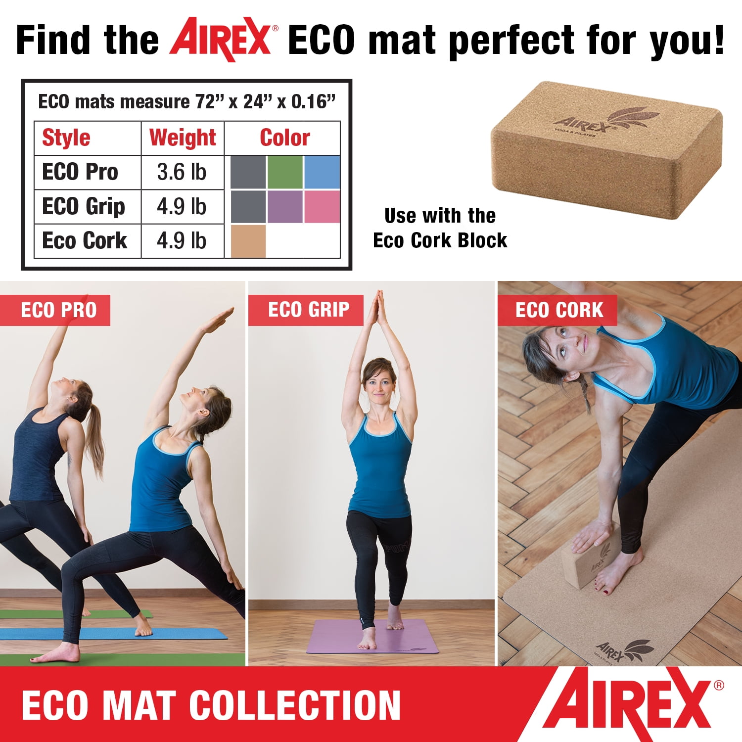 AIREX Exercise ECO Mat Fitness for Yoga, Physical Therapy, Rehabilitation, Balance & Stability Exercises – ECO Cork Mat