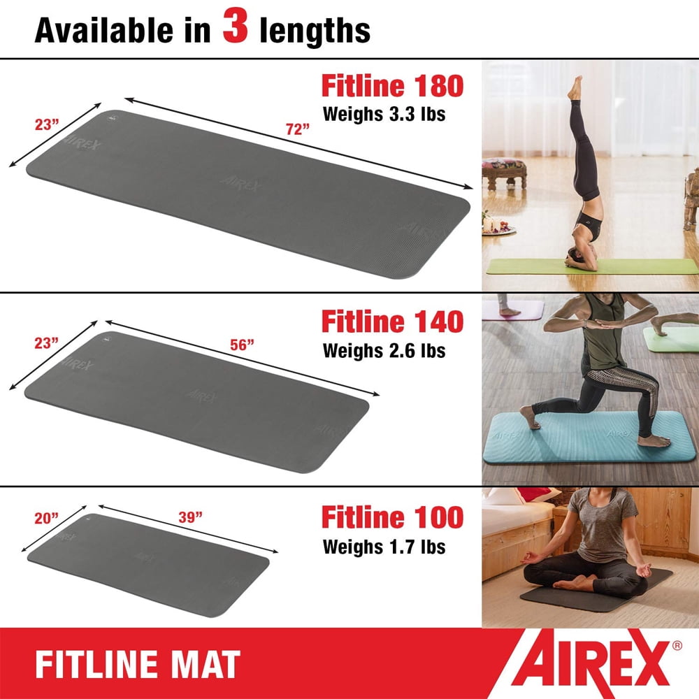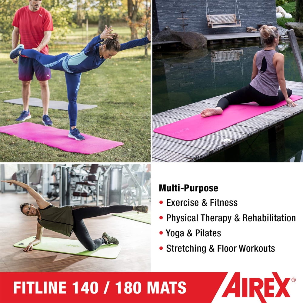Take your workout routine to the next level with the Airex Fitline 140 Foam Exercise Mat. The Fitline 140 is a premium foam mat that provides the cushion and support you need for yoga, pilates, floor exercises, stretching, meditation, and more. Made from closed-cell foam, this high-quality construction ensures that the Fitline 140 mat maintains its shape over time and repels moisture and odors. The mat has a safe, non-slip, durable, tear-protected surface that provides extra grip and toughness. Its textured surface also stimulates the feet when used barefoot, making it ideal for joint and fascia rehab. Cleaning an Airex mat is a breeze. Simply rise the exercise mat with water and air dry after use. This mat is designed for repeated, heavy use in commercial gyms, fitness clubs, personal training clinics, and home workouts. When you’re finished, simply roll up and store in your home or take it on the go! Exercise like a pro with the Airex Fitline 140 Foam Exercise Mat.