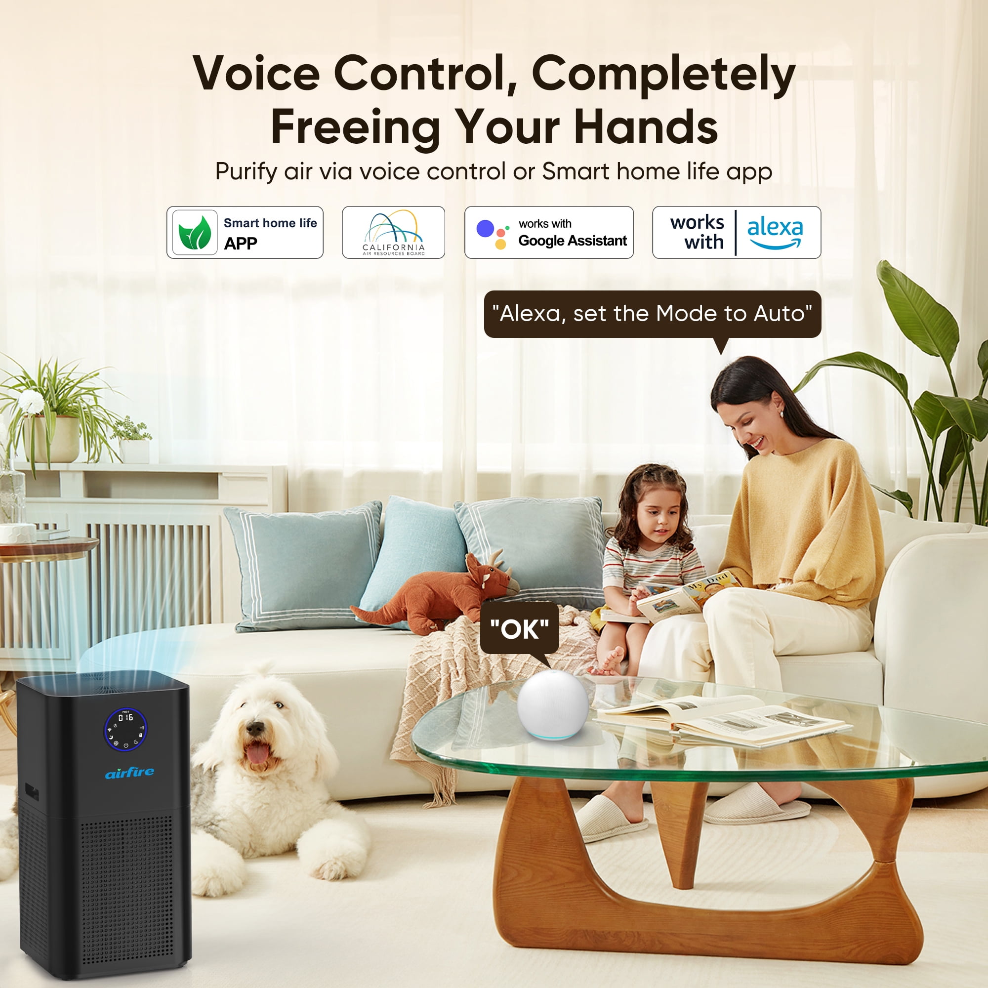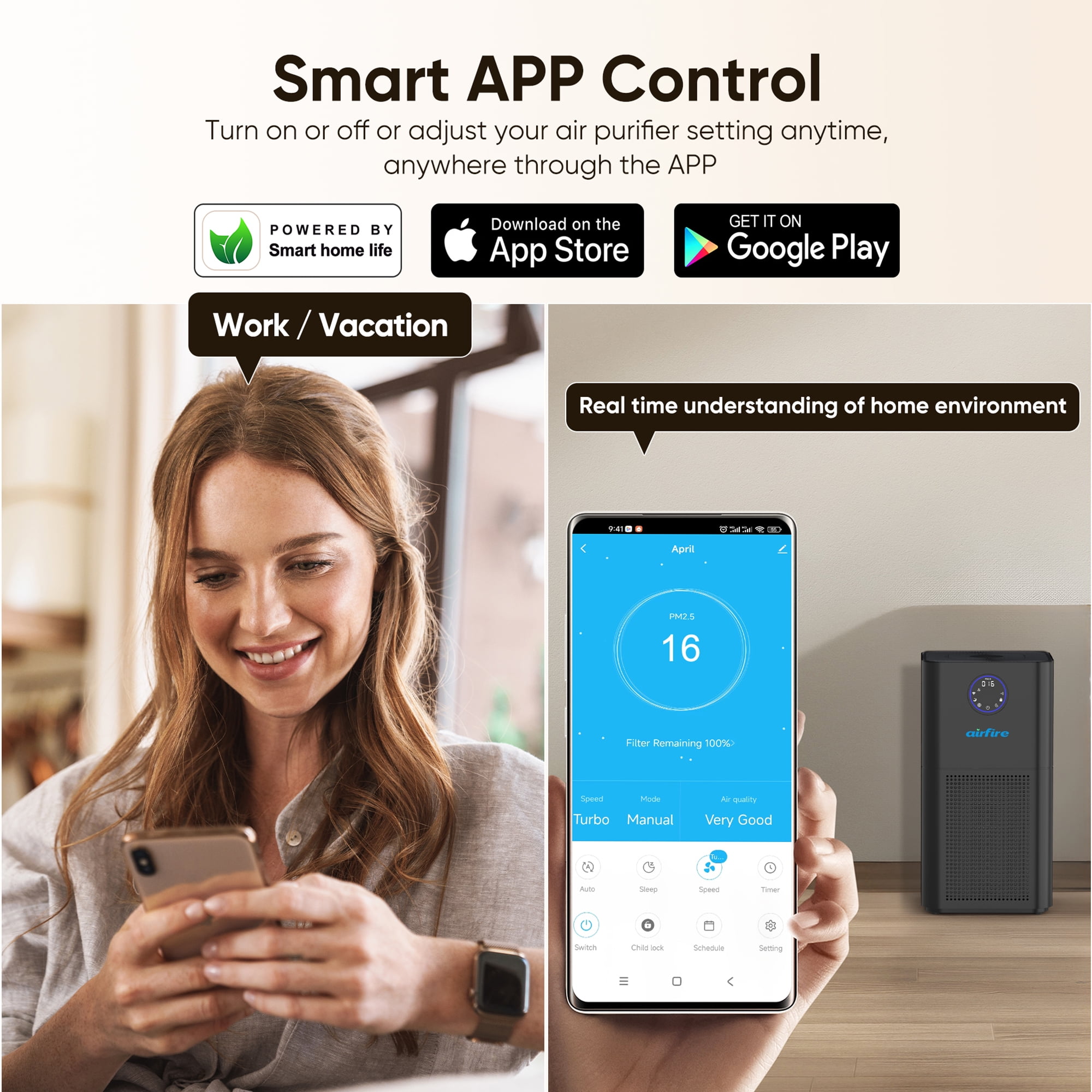 【How to replace the filter】 Replacement filter item IDs. Search and buy directly on . 1. Original Filter, item id is 5676681453. Key Features: 1.【Support 2500 Sq. ft Room】 Our air purifiers for home large room can purify a 2500 sq. ft. room once and a 400 sq. ft room five times within an hour. In addition, it is equipped with the latest tech motor and 360°air inlet in 2024, which can quickly and efficiently clean pet dander & odor, smoke, volcanic ash, dust, etc. Our air purifiers for smoke odors can bring you clean and fresh indoor air and protect you and a good body for your family. 2.【Equipped with H13 Level Advanced HEPA Filter】 This air purifier for bedroom is equipped with a true H13 HEPA filter. Our true air purifiers for dust is equipped with a four-layer filtration system: pre-filter, H13 HEPA filter, carbon filter, and non-woven fabric. Our air purifier for large rooms can help you filter 99.97% of small dust, as well as pet hair/odor as small as 0.3 microns, smoke, volcanic ash, car exhaust, kitchen fumes. Provide you with a comfortable indoor environment to protect you from lung disease. 3.【Supports Smart APP Control】 Our air purifier for smoke support you remotely turn it on or off anytime and anywhere, whether you are at home or not. Just download the “Smart Home Life” APP. Control your HEPA air purifier through the APP. The APP product is rich in functions to meet your various needs and provide you with multiple conveniences. 4.【Support Alexa or Google Assistant Control】 Our air purifier for support you connect to Alexa or Google Assistant through our app. When you want to get up or go out, all you need to do is say a word like “Alexa, turn on/off the air purifier”. After that, our air cleaner will start working and purify the air for you. 5.【Sleep Mode and Ultra-Quiet】 You can turn on the sleep mode of our air purifier for room when sleeping at night, so that only the sleep indicator light is on, and the noise in sleep mode is less than 23dB. Our home bedroom air purifiers can provide you with a comfortable sleeping environment, allowing you to sleep peacefully. 6.【1-12 Hour Timer and Child Lock Function】 Whether you take a lunch break or an evening break, you can set the schedule. On the machine interface, you can set the timer for 1-12 hours. On the APP side, you can also set a long timer, and even schedule to turn on theair purifier for dorm at a certain time in the future. In addition, Our WiFi air purifiers also has a child lock function to prevent children or pets from accidentally touching it. 7.【Smart Filter Replacement Reminder】 Our portable home bedroom air purifier comes with a 3000H efficiency filter replacement reminder. You can also check the service life of the filter through the APP. After the portable air purifier has been used for 3000 hours, the indicator light will flash. Depending on usage and air quality, it is recommended to replace the filter every 6-8 months. To ensure the all results from your product, we recommend using official filters. 8.【Must See】 The power adapter, manual and remote control are all inside the filter, please rotate the bottom of the air purifier to take out the filter before usage to get all the accessories. 9.【Quality Assurance】 This home air purifier for large rooms is FCC certified, CARB approved ETL Listed and 100% OZONE FREE, totally environment friendly. Besides, we provide 3-Years Warranty & Lifetime Service Support. 10.【What’s Included】 1* Air Purifier withH13 Level HEPA Filter, 1* Power Adapter, 1* Remote Control, 1* User Manual
