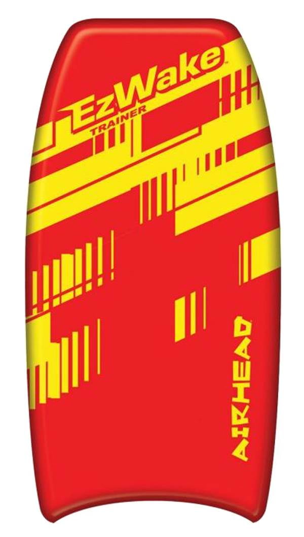 Inflatable/bodyboard hybrid Engineered for stability while towing (10 mph max.) Teaches basic wakeboarding, kneeboarding, wakesurfing and wakeskating fundamentals including proper stance, handle position, balance and weight transfer for turning 1-rider, up to 70 lbs. 47″ x 35″ x 12″ (inflated) Body board size: 39″ Airhead EZ Wake Trainer – 1-Rider SKU : 3003.5993 UPC : 737826037322