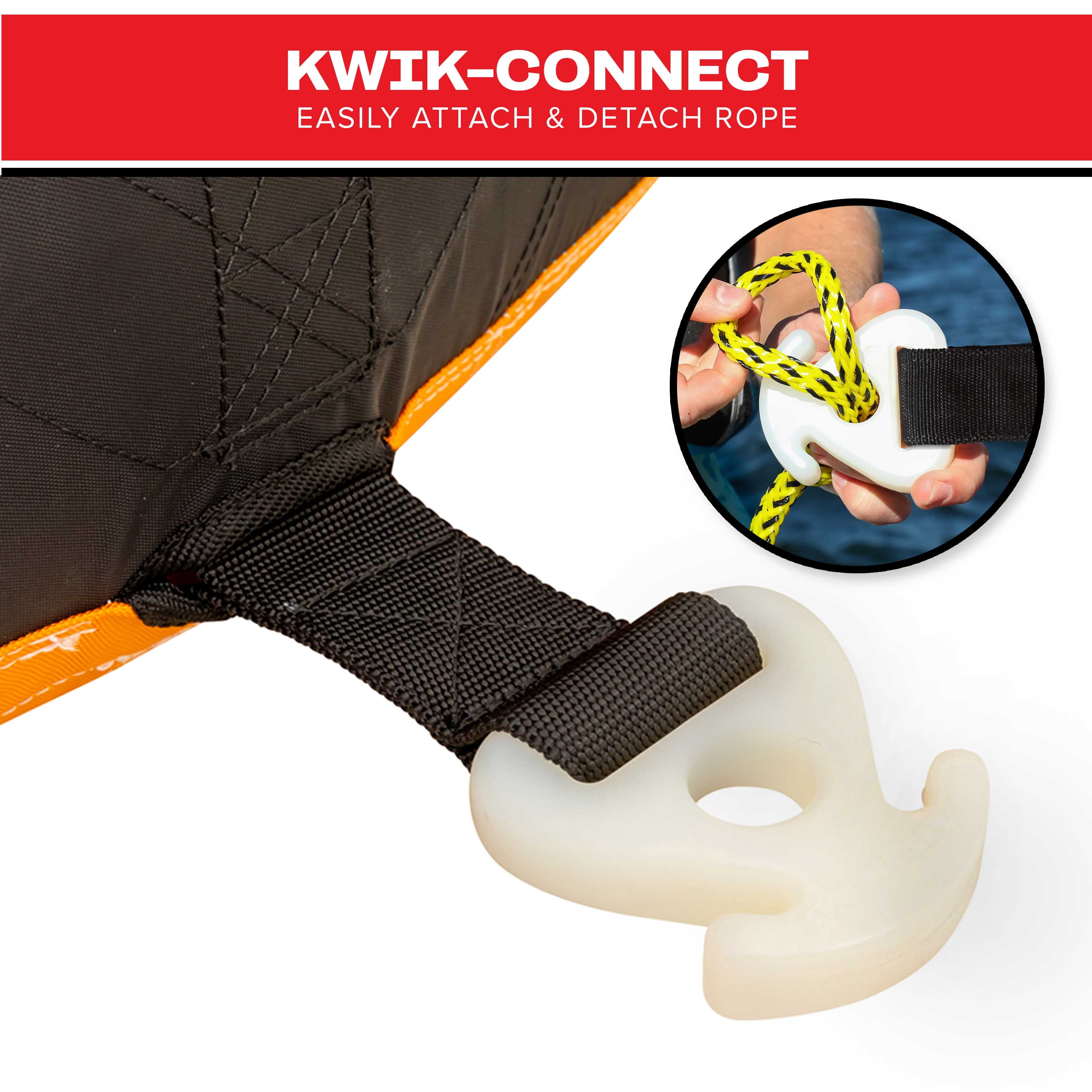This 2 person towable tube carries a crowd with precision, and its large, flat deck makes it easy to slice through water and cut corners without losing control. 30-gauge RF welded PVC bladder are wrapped in heavy-duty plush neoprene foam. Add this to the foam-filled webbing handles and expertly-placed boarding straps, and you have the softest possible riding experience among all water tubes for boats. Plus, this comfort feature prevents tube rash and other surface abrasions. Comfort Shell 65 offers safety families can rely on. A heavy-duty Kwik-Connect tow point provides easy hook-ups, and the Patented Speed Safety Valve offers quick inflation and deflation. Deflated dimensions: 58″. Max capacity: 340 lbs.
