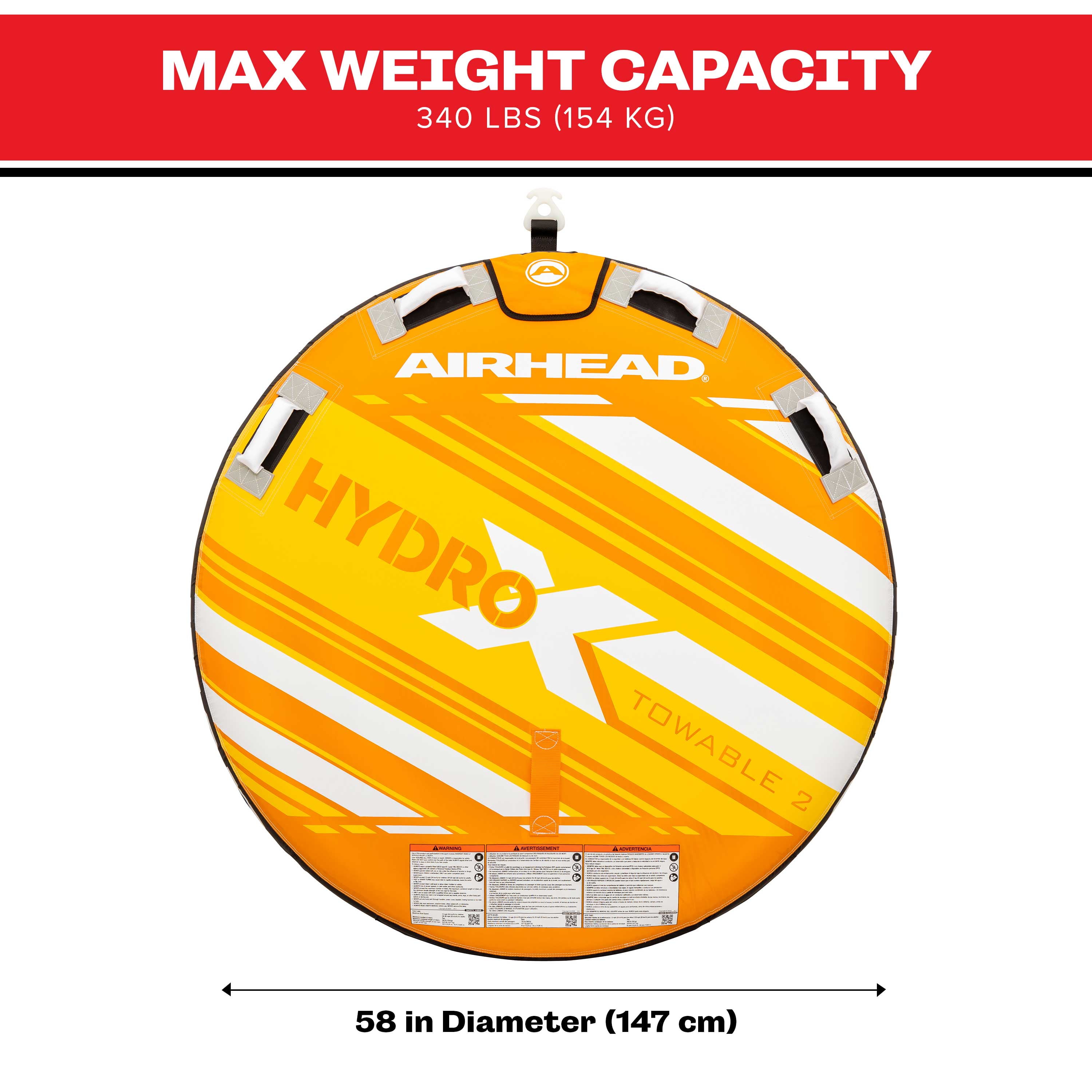 Airhead Hydro-X 2 Person Towable Tube for Boating, Orange, 58″ Deflated Size, Max Capacity 340 lbs