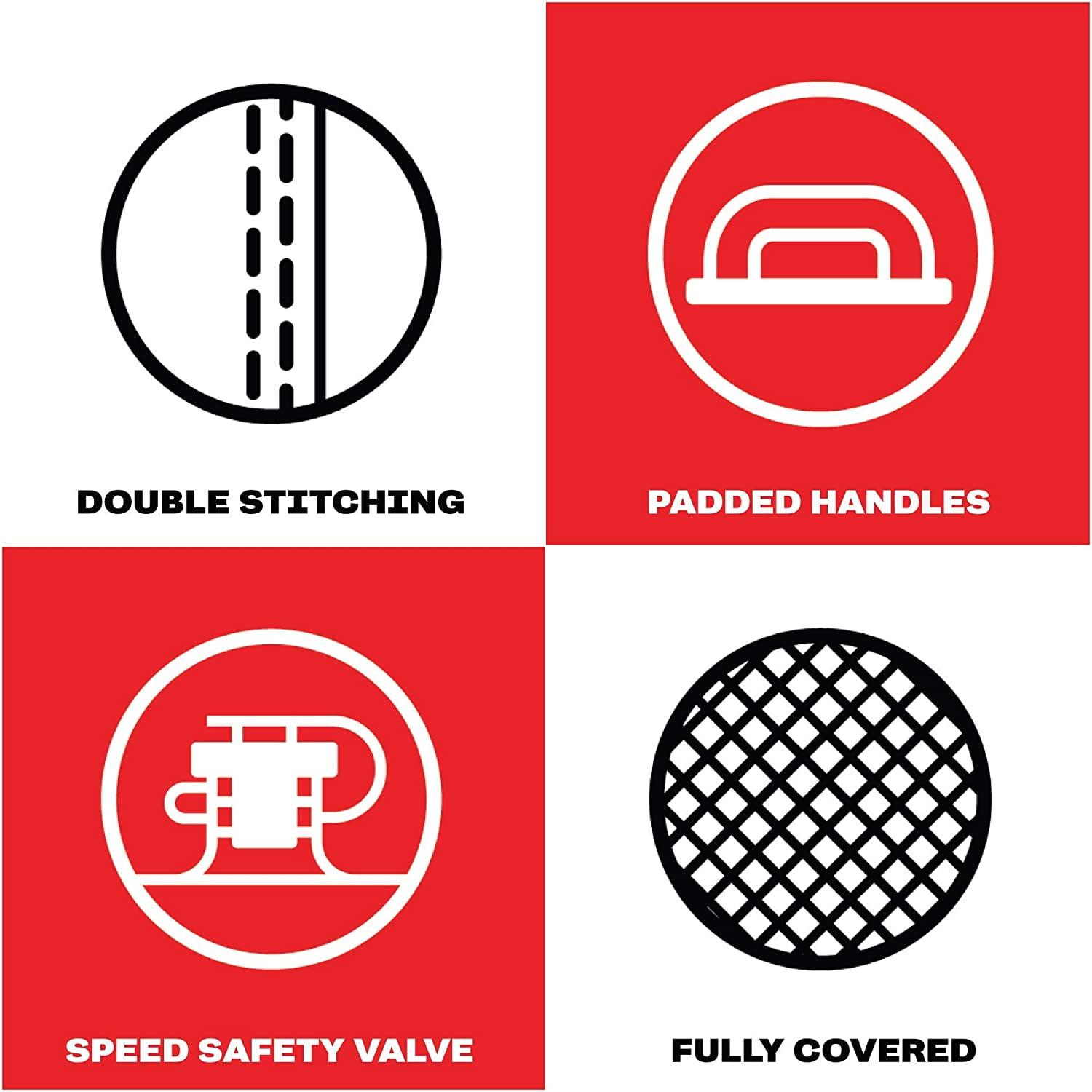 Entire tube is covered with our double stitched nylon to ensure both comfort and years of use Foam-filled, nylon wrapped handles ensure comfort while you hold on tight Heavy-duty radio frequency welded seams keep the air where it belongs Patented simple valve for quick and easy inflating and deflating 54 inch diameter deck tube has four deluxe handles with neoprene knuckle guards 12v air pump, which is designed to inflate your Rebel Kit quickly and effectively Quick, easy way to get started with boat towable