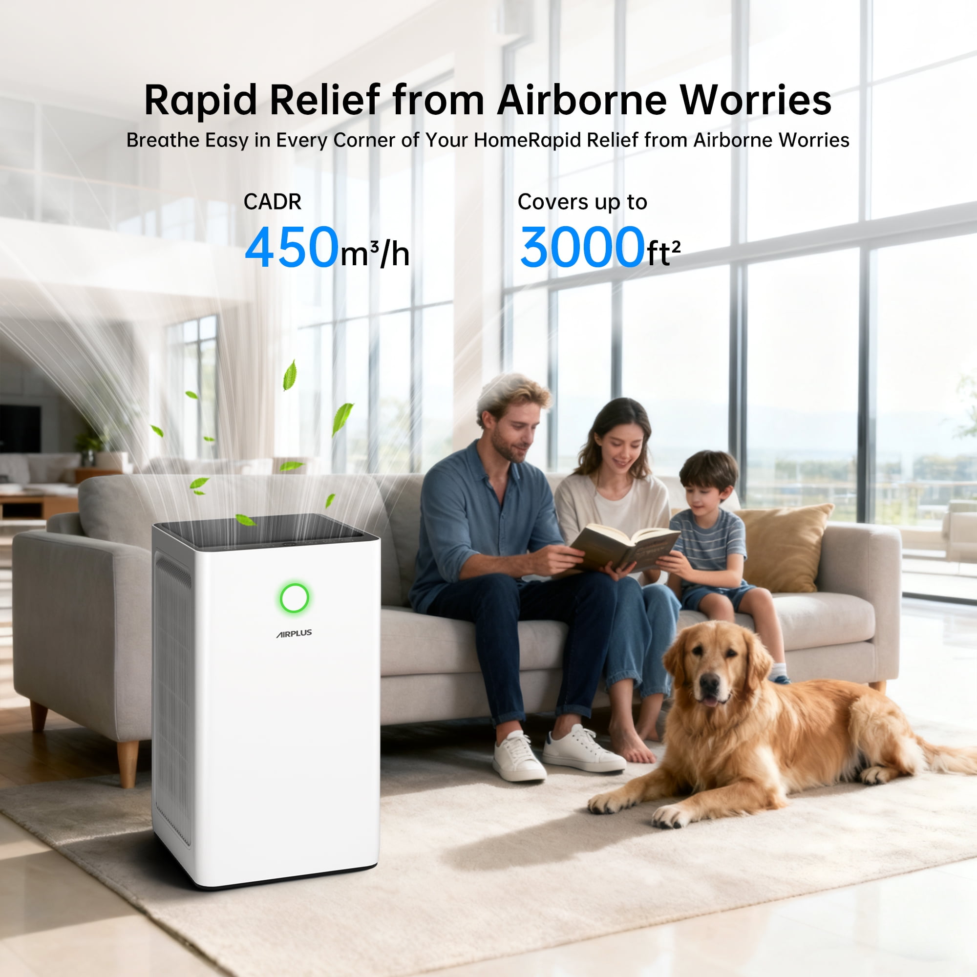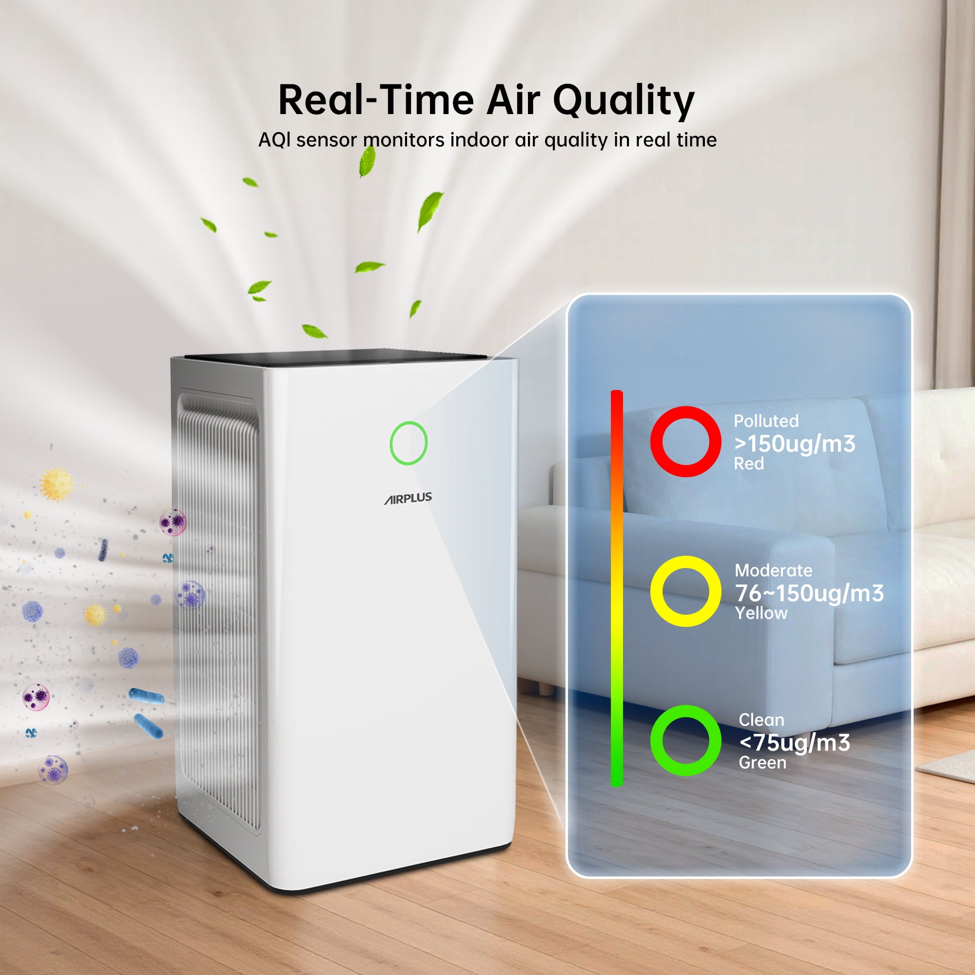 AIRPLUS Air Purifiers for Home Large Rooms up to 5000 Ft², H13 True HEPA 99.97% Filtration with Sleep Mode & Child Lock, 260 CFM CADR, PM2.5 Air Quality Display Removes Allergies, Pet Odor, Pollen