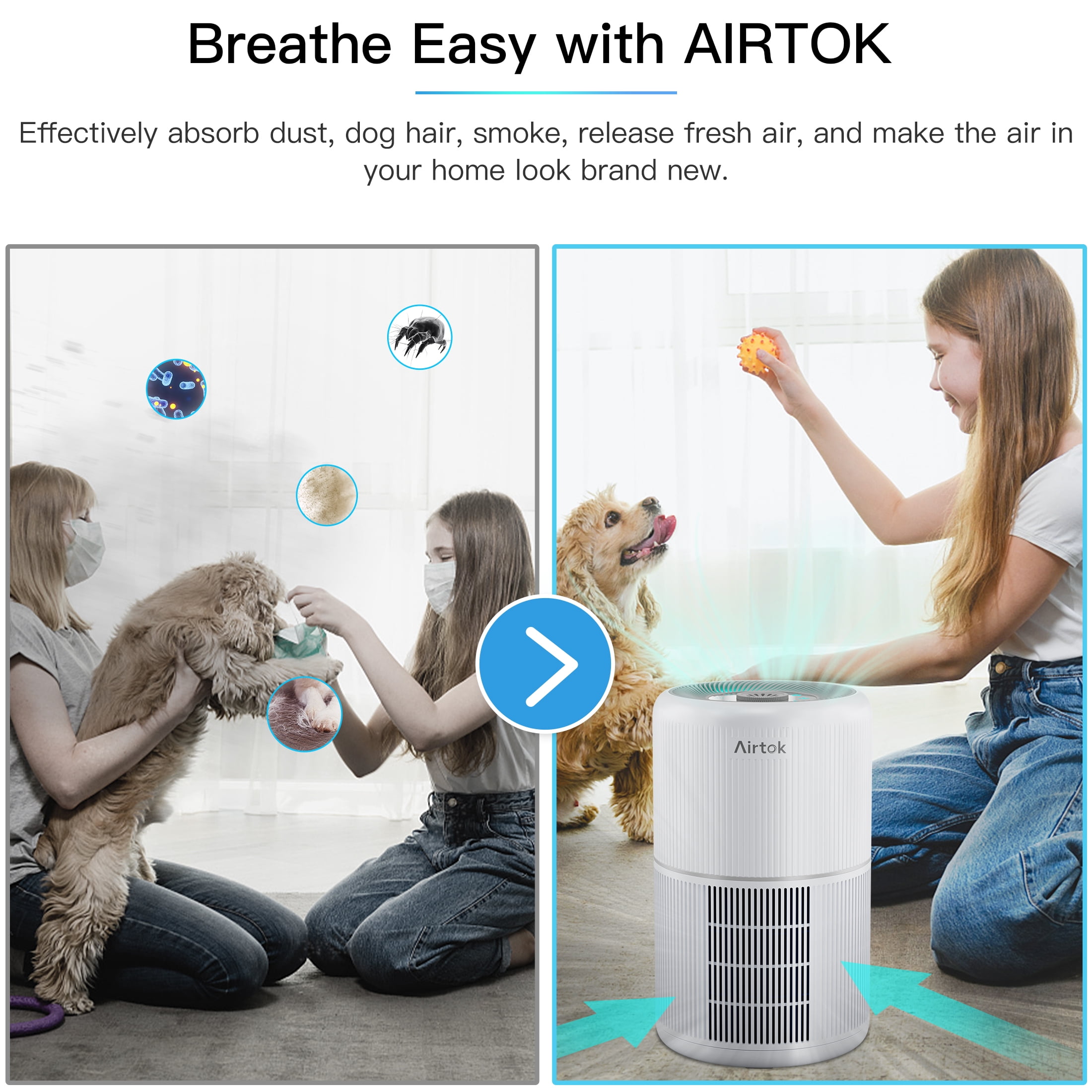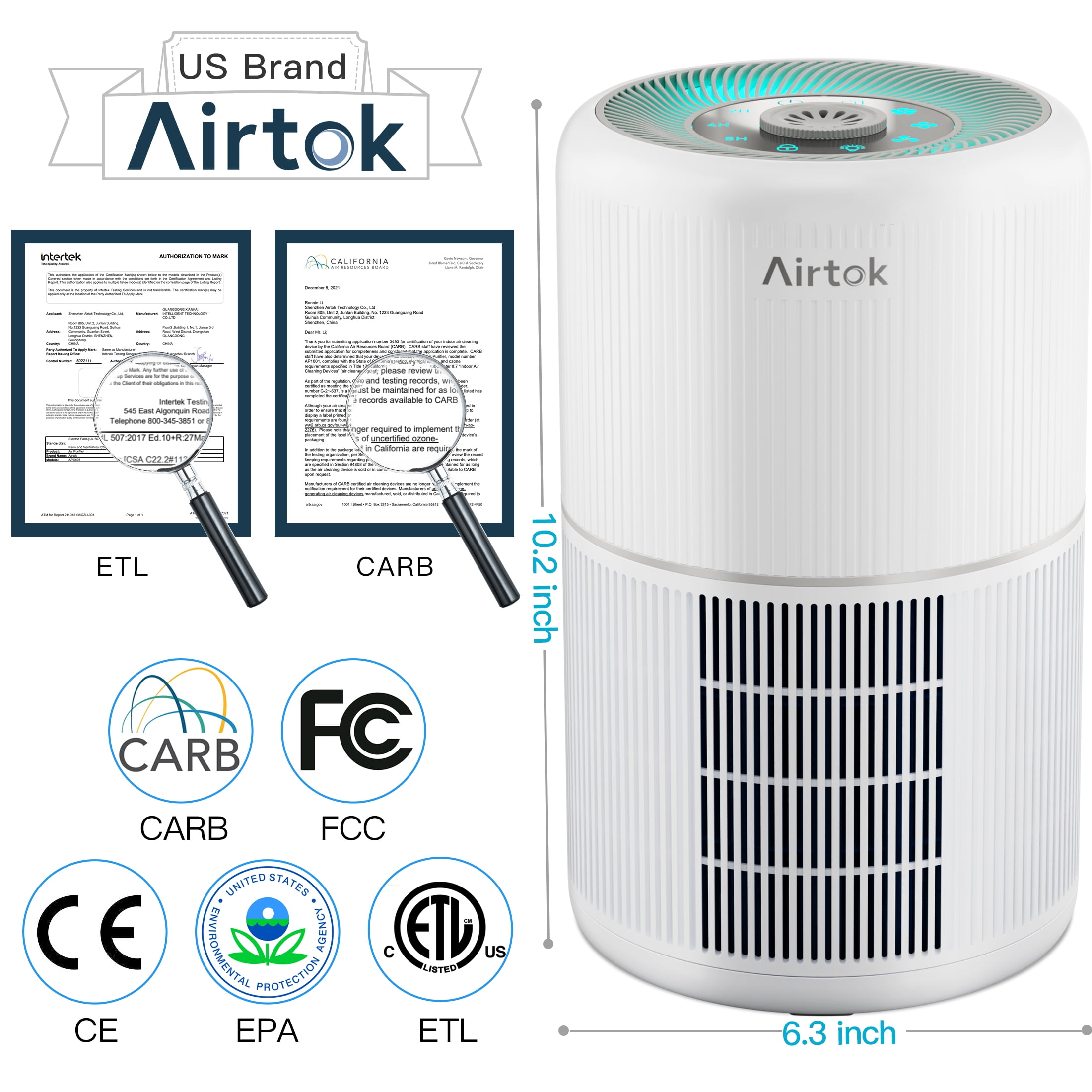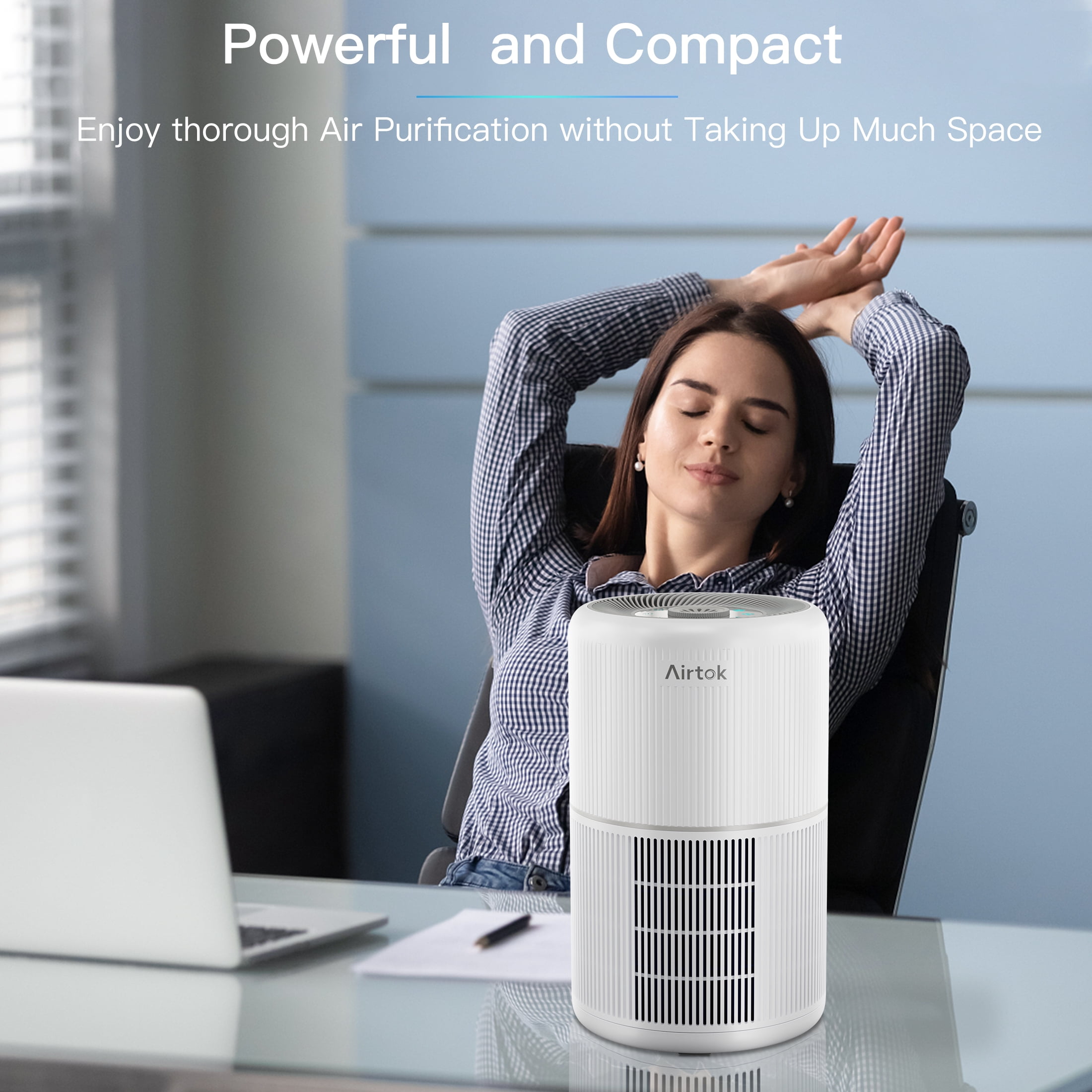 AIRTOK True HEPA Air Purifier for Home, Small Rooms, Allergies, Asthma, Smoke, Pet Dander, Odor, Dust, Pollen, Mold, Ozone-Free, Quiet, AP0601 White