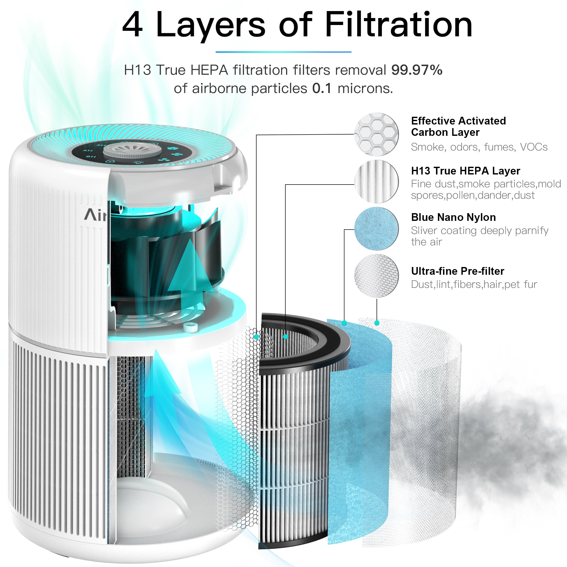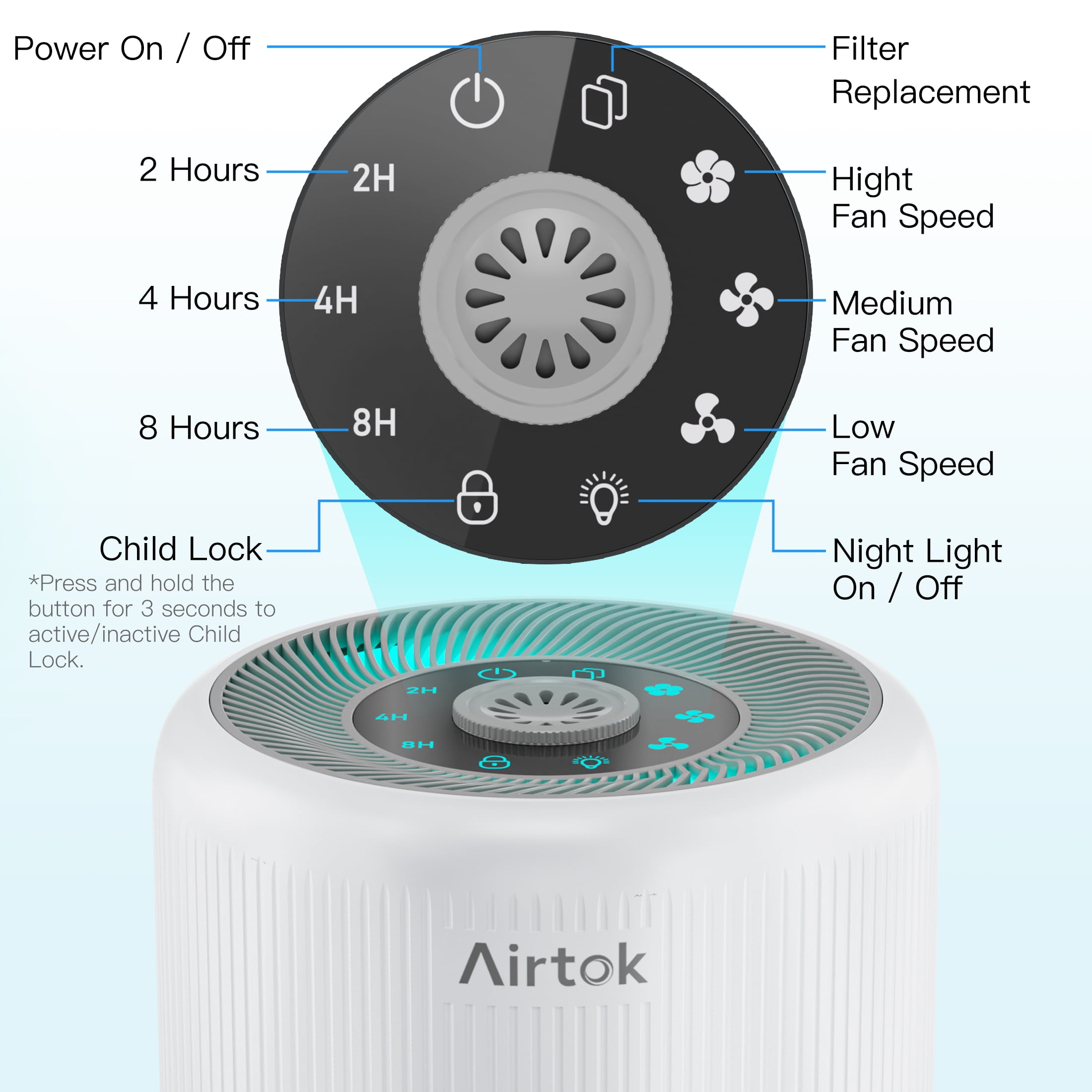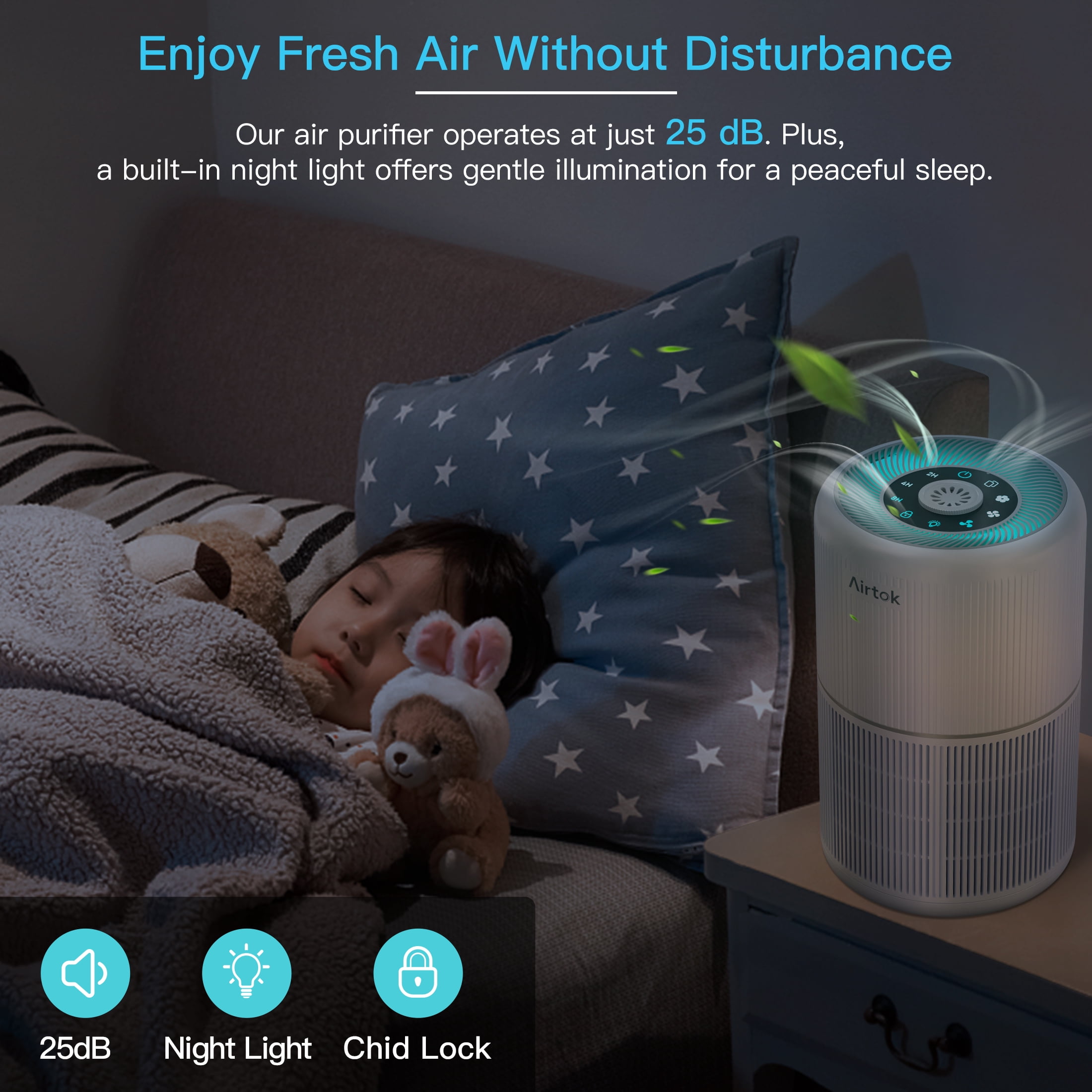 AIRTOK True HEPA Air Purifier for Home, Small Rooms, Allergies, Asthma, Smoke, Pet Dander, Odor, Dust, Pollen, Mold, Ozone-Free, Quiet, AP0601 White