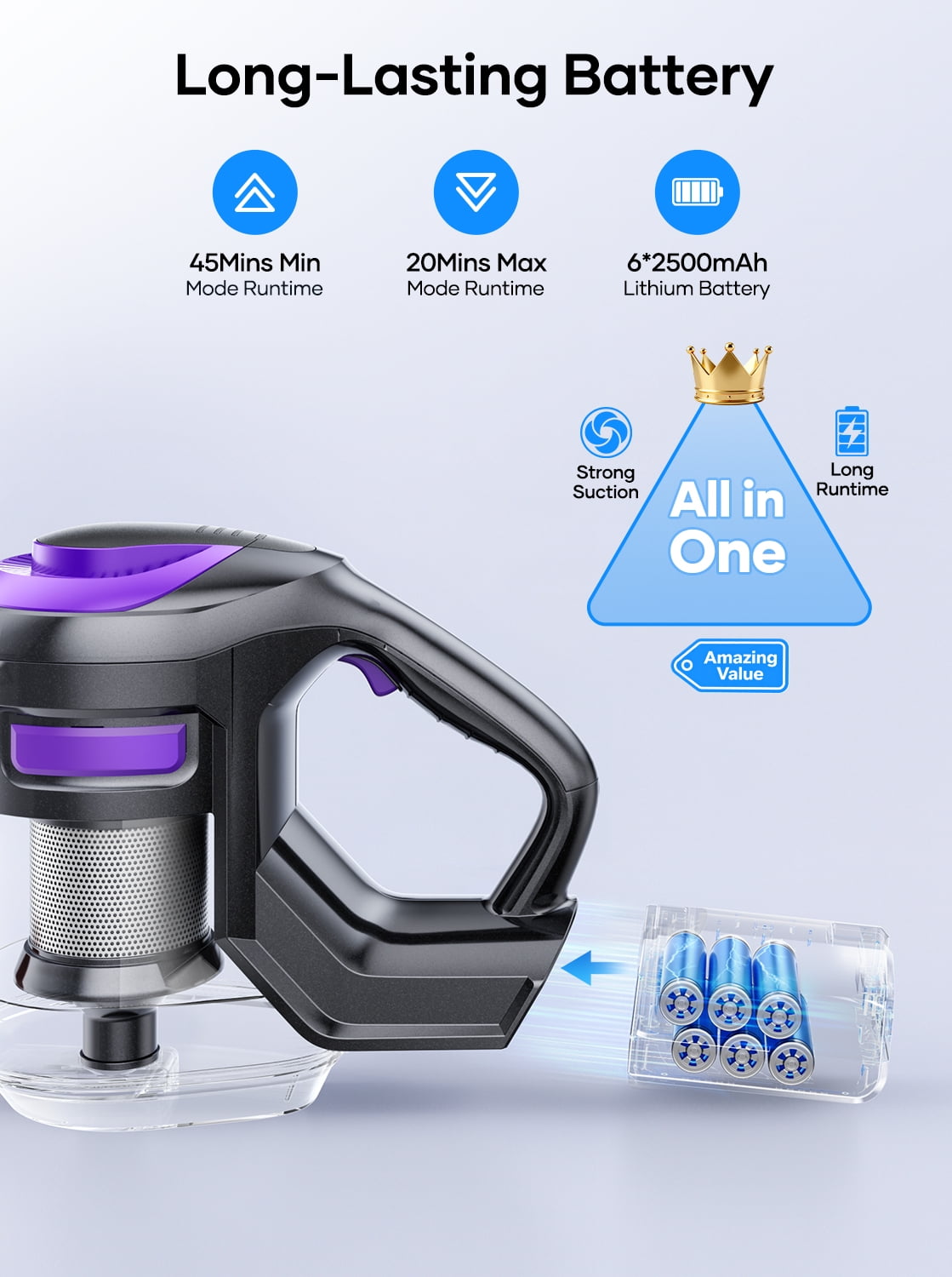 Laresar Cordless Vacuum Cleaner, Lightweight Stick Vacuum for Pet Hair Carpets & Hard Floors