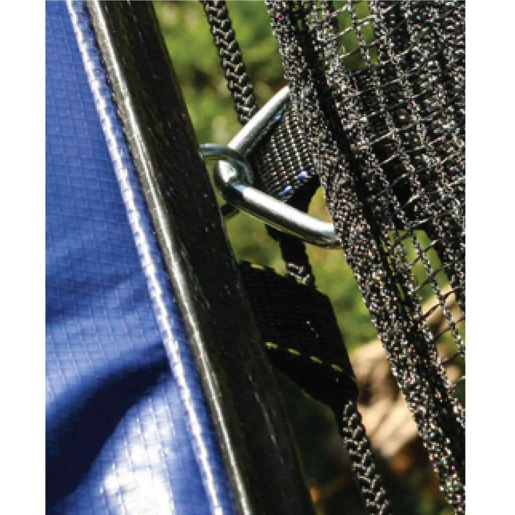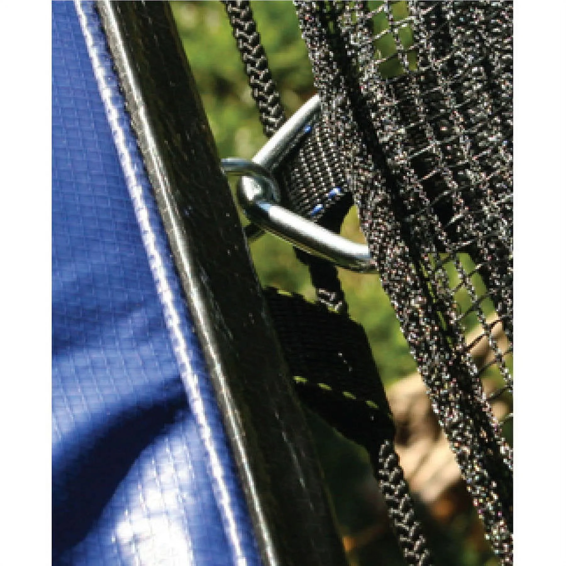 Add some safe fun to your backyard with the Airzone 8′ Trampoline with Safety Enclosure in Blue. It features enclosure netting that’s made of a durable, non-abrasive polyethylene mesh, which is tightly woven so little fingers and toes don’t get caught. The Airzone trampoline springs are made of high-performance stainless steel protected with a weather-resistant PVC frame cover and thick sewn-in padding. It also features W-shaped legs that create two contact points for each leg to provide additional stability. This Airzone 8′ Trampoline with Safety Enclosure in Blue includes a patented zippered arch that allows you to close the mesh easily and quickly. It also has an added bungee cord around the top of the enclosure that keeps netting taut and secured to the enclosure masts. This backyard trampoline can provide hours of entertainment in a safe environment.