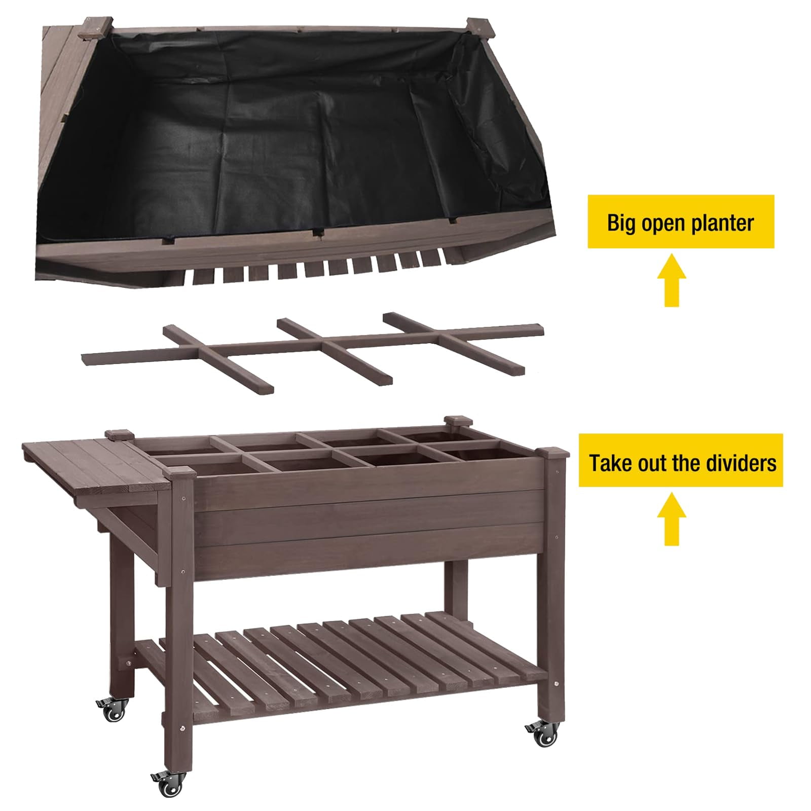 SOLID CONSTRUCTION: Constructed of thick wood boards and solid wood legs, this elevated garden planter is sturdy enough for years of use. Thickness of 2.2″ frame that is stronger than the others build to last through the seasons with proper care. EXTRA TABLE LEDGE: The additional table ledge allows you to reach your watering can, shovel and other tools without bending down. 8 TRELLIS FOR DIFFERENT PLANTS: Easy Growing Up To 8 different herbs/flowers/vegetable with grow grid. The dividers can be easy remove so it’s one BIG OPEN PLANTER. Or you can remove the dividers to achieve a larger plot. FABRIC LINER: Before adding soil, you can place the prepared fabric liner into the frame to better retain the soil and maintain moisture. EASY ASSEMBLY: The elevated herb garden is super easy to assemble, it is prefect for smaller places that need a functional planter. Beautiful decoration planter herb makes planting funny.