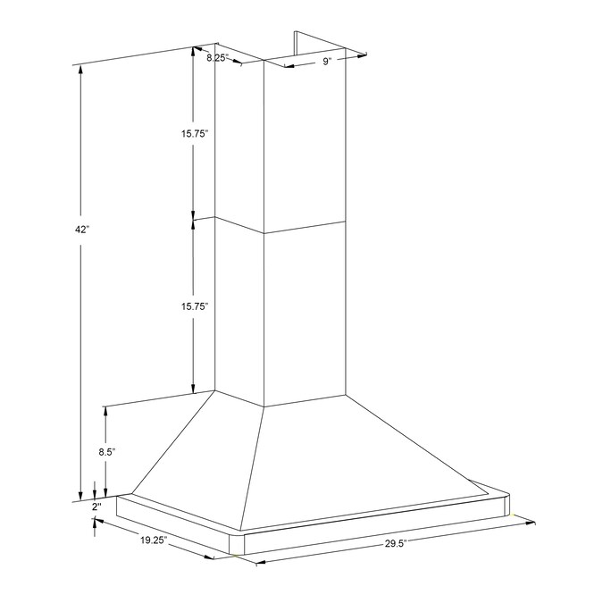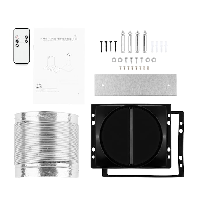 • Decorative Chimney: The wall-mount range hood includes a decorative chimney designed for ceilings from 8 to 8.5 feet
