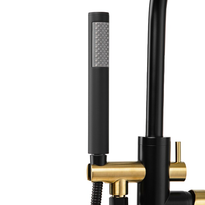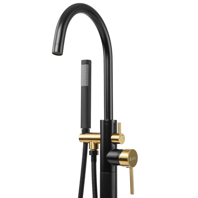 AKDY Black and Gold 1-handle Freestanding Low-arc Bathtub Faucet with Hand Shower (Valve Included)