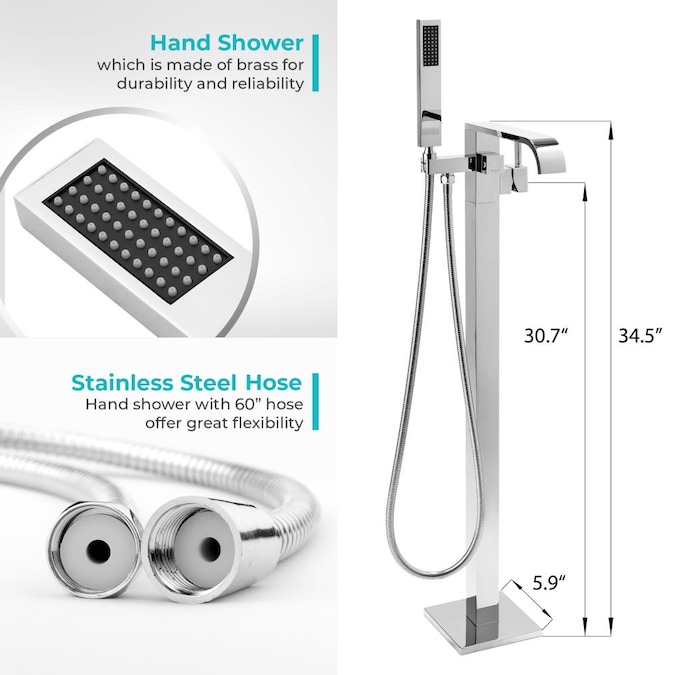 Modern and timeless, Andy’s TF0016 freestanding tub filler has a refined look to match any bathtub and bathroom decor. A stunning chrome finish is accented by sleeks lines and contemporary design. An included hand shower lets you have greater freedom and mobility to fully relax without compromise.