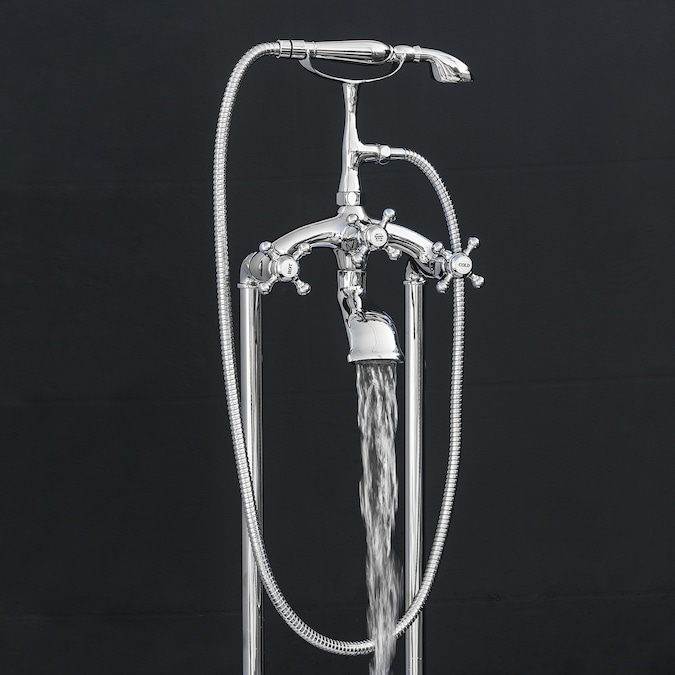 • Tub filler faucet for freestanding installation and bathtub