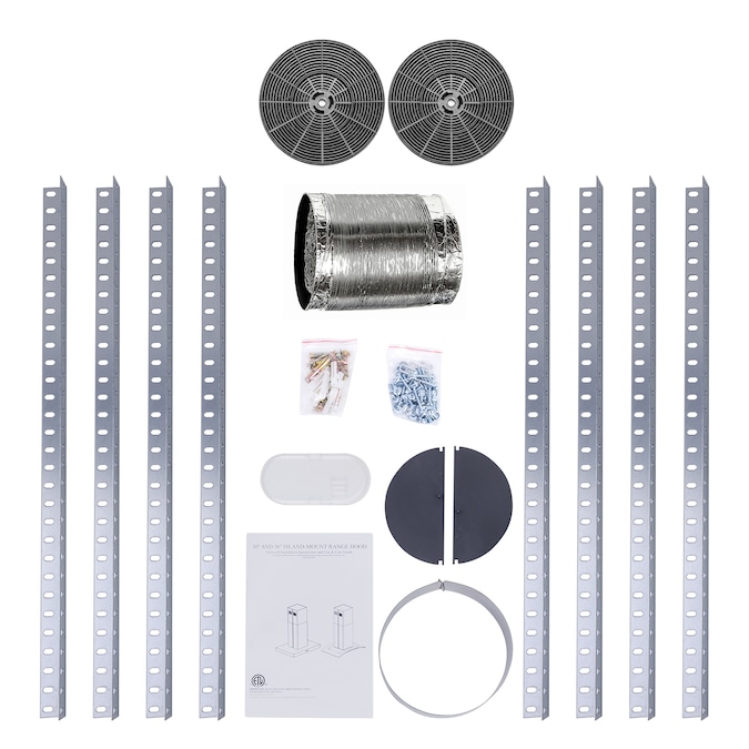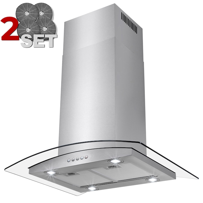 Elevate your kitchen’s ambiance with this flawless, modern 30-inch island range hood. Its Eurocentric style, complemented by a beautiful stainless steel brush finish, adds a touch of elegance to any culinary space. Effortless Ventilation: Experience the ease of use with push controls for the four LED lighting options and a three-speed fan operating at 343 CFM. Enjoy dinner gatherings with your loved ones as the low 60db noise level ensures a peaceful atmosphere. The reusable two mesh filters efficiently trap grease and oils, keeping your kitchen fresh and inviting. For ductless installation, 2 sets of carbon filter kit CF0011 are included, ensuring a delightful cooking environment.