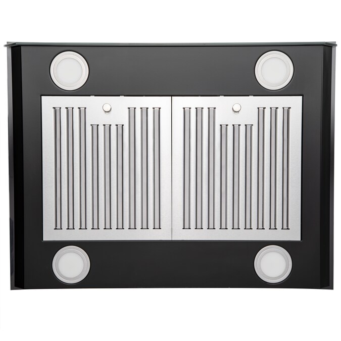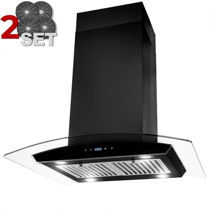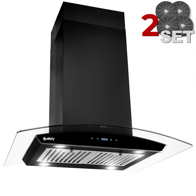 This sleek, elegant AKDY 36 in. Black Painted Stainless Steel island mounted canopy range hood is undeniably impressive with its modern contemporary features. Easy to use Touch Control on the front, allow you to control the fans speed up to three variants at 343 CFM. This keeps your kitchen fresh from unwanted odors lingering. 2 baffle filters keep oil particles and the baffle filters are detachable an easy to clean. 4 LED lights keep your cooking area well-lit when cooking during events, gatherings, or other dark conditions. For ductless recirculating installation, 2 set carbon filter kit is included(CF0011).