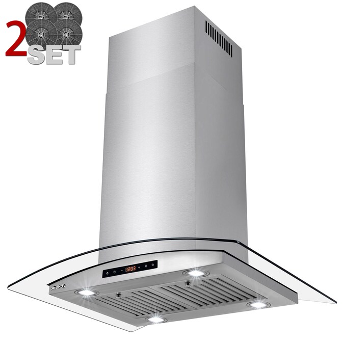 This sleek, elegant AKDY 36 in. island mounted canopy range hood is undeniably impressive with its modern contemporary features. Easy to use Touch Control on the front, allow you to control the fans speed up to three variants at 343 CFM. This keeps your kitchen fresh from unwanted odors lingering. 2 baffle filters keep oil particles and the baffle filters are detachable an easy to clean. 4 LED lights keep your cooking area well-lit when cooking during events, gatherings, or other dark conditions. For ductless recirculating installation, 2 Set carbon filter kit is included(CF0011).
