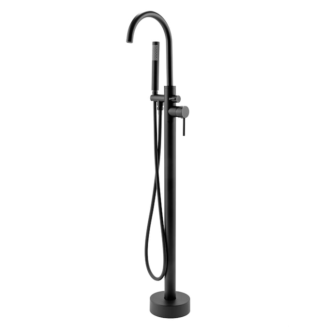 This AKDY 45.5 in. TF0042 freestanding bathtub filler brings tranquility and a blissful relaxing experience as you bask within your bathtub. This tub filler model comes in a beautiful matte black finish which is perfect for a more modern look for your bathroom design. It is made from brass and stainless-steel material providing durability. 2 levers are located on the left, giving you easy control of the flow of water and the temperature. The top lever controls the spout and wand, and the bottom lever controls the temperature. The handheld shower wand has a matching matte black handle with 67 nozzles to provide maximum water flow to a single direction. This gives you a more precise shower and more freedom with its 60 in. flexible hose. The height to spout is 40.75 and is perfect for any freestanding bathtub for a modern bathroom design. This product comes with a 1-year limited parts warranty as well as necessary mounting hardware.