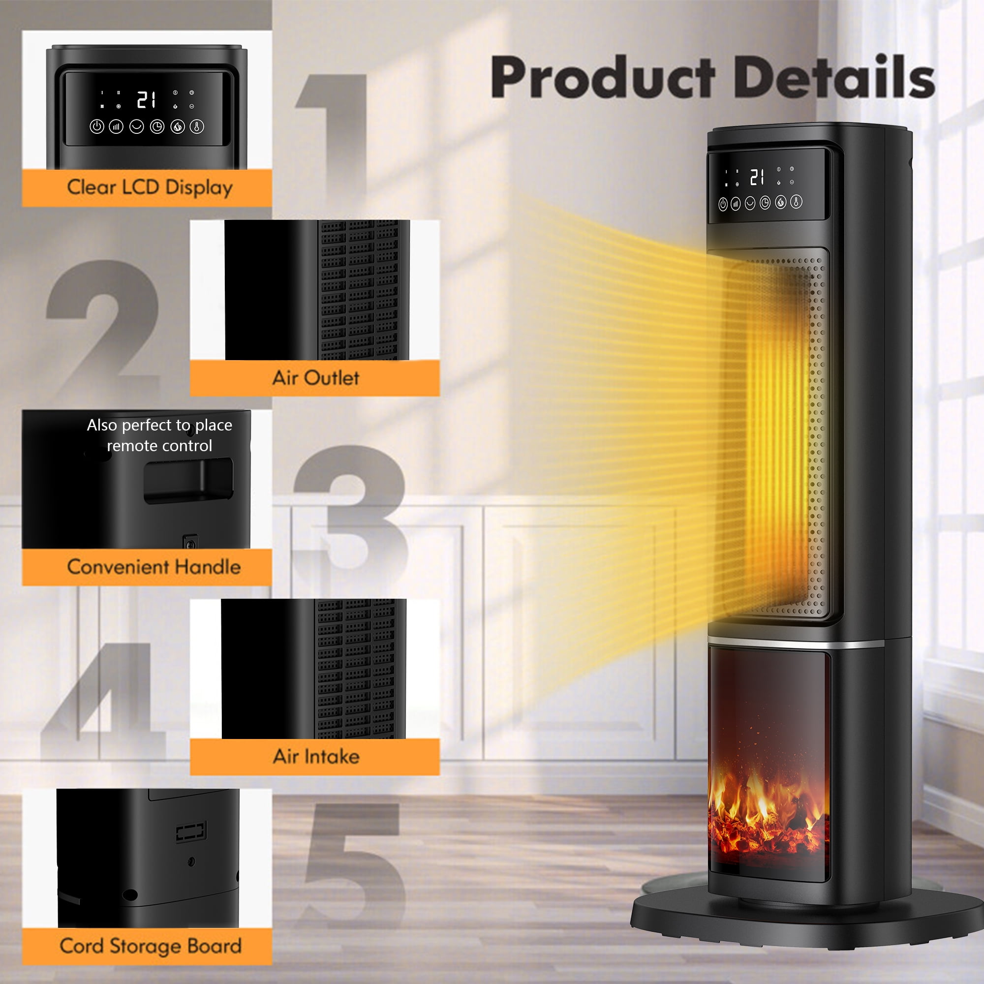 ♥● Creat a Quiet and Warm Room: Exceptionally quiet operation makes the heater perfect for any room, since it won’t bother you from work, sleep, chat or anything, especially in night when you are in sleep. Unique design maximize heat flow into the room, you can enjoy a peaceful and warm environment with this heater. Ideal for full room such as, offices, bedrooms and living rooms. ♥● Fast, Efficient Heating: Built-in ptc ceramic heating stuff, our space heater can quickly & evenly warming an entire room while maintaining a consistent temperature. The heater has high/low/eco 3 modes to satisfy your needs. It can up to 1500w fast heating feature which can warm you up in seconds! Also, it features oscillation function to widespread heat. ♥● Remote Control and Smart 12-hour Timer: Equipped with a remote control which features sensitive response and ultra-long sensing distance, the space heater is convenient for you to adjust indoor-temperature. Also this heater is designed with a timer function from 1-12 hours, which makes you no longer have to worry about forgetting to turn off the power. ♥● Overheating and Tip-over Protection for Safety: The heater features an overheat protection that switches off the heater automatically in case of overheat for added safety. The heater also has a tip-over safety protection which shuts the heater off if it gets knocked over accidentally to help prevent accidents. In addition, it has a child lock safety feature.
