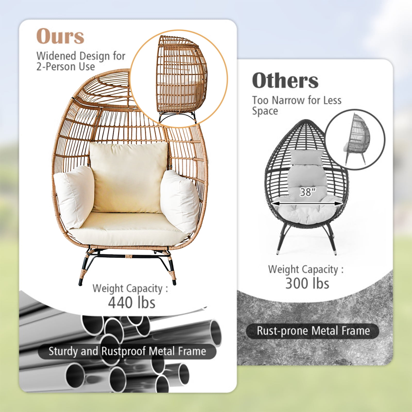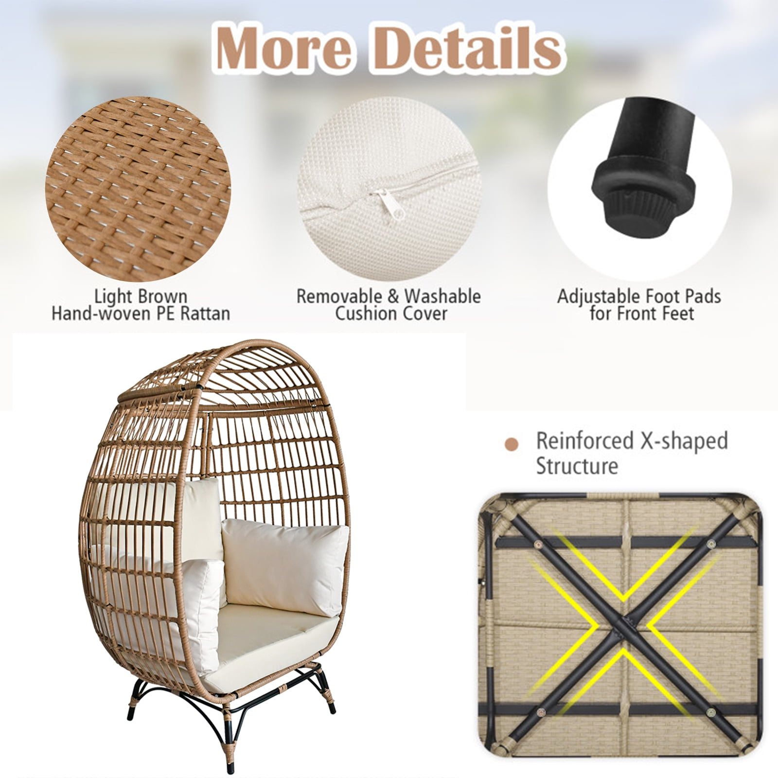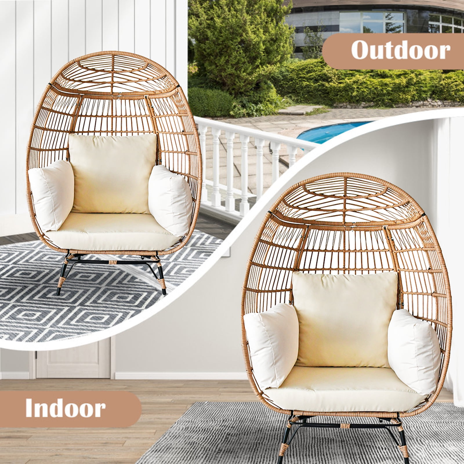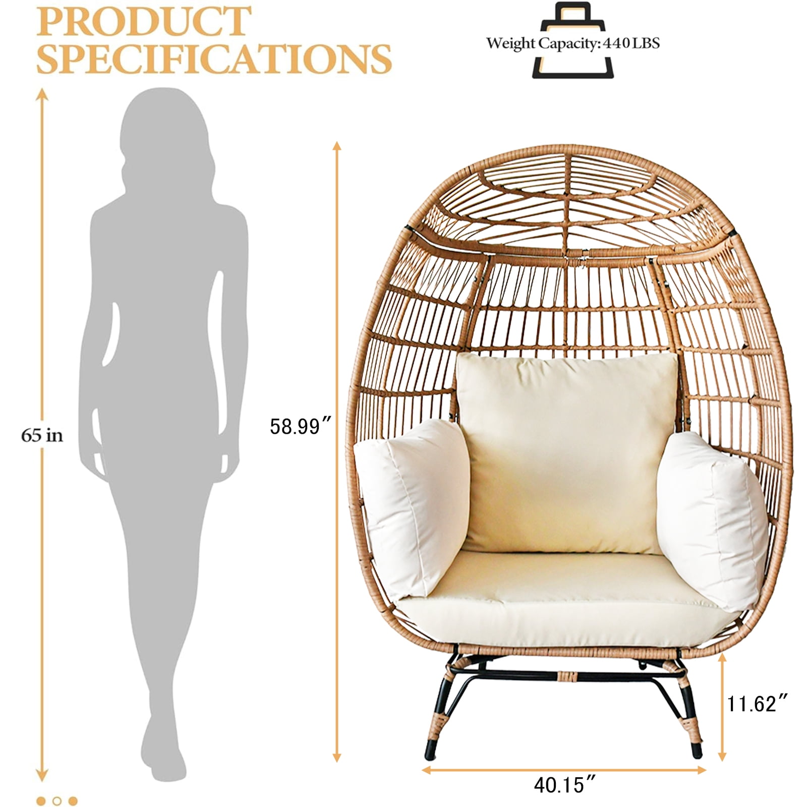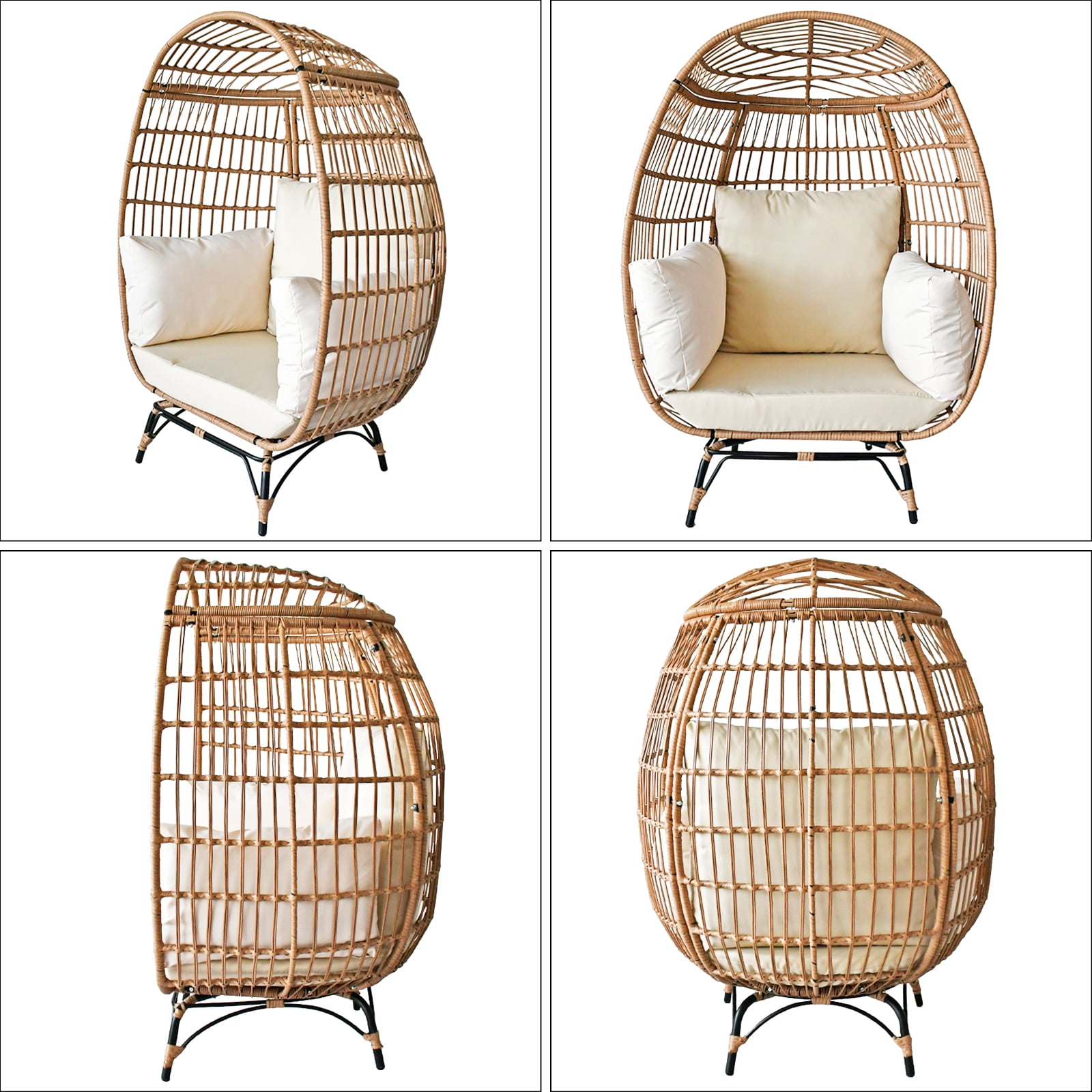 AKIUDEX Egg Chair Outdoor Patio Chair,Oversized Lounger Chair with Cushion Egg Basket Chair for Indoor Outside Balcony Backyard Beige