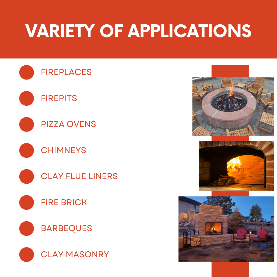 READY TO USE: Preblended, add water and go! INDOOR OR OUTDOOR: Ideal for fireplaces, inside of fire pit rings, barbeques, pizza ovens, and chimney applications such as setting clay flue liners, parging a smoke chimney chamber BUILT FOR HIGH TEMPERATURES: Made to resist 2,550°F (1400°C) for a minimum of 6 hours without melting out of the joints of a firebrick and refractory mortar assembly EFFICIENT WORKING TIME: Provides 1 hour of working time before hardening HIGH STRENGTH: Once cured, becomes water-insoluble and acid-resistant Multipack Quantity: 1 Model Number: 114266