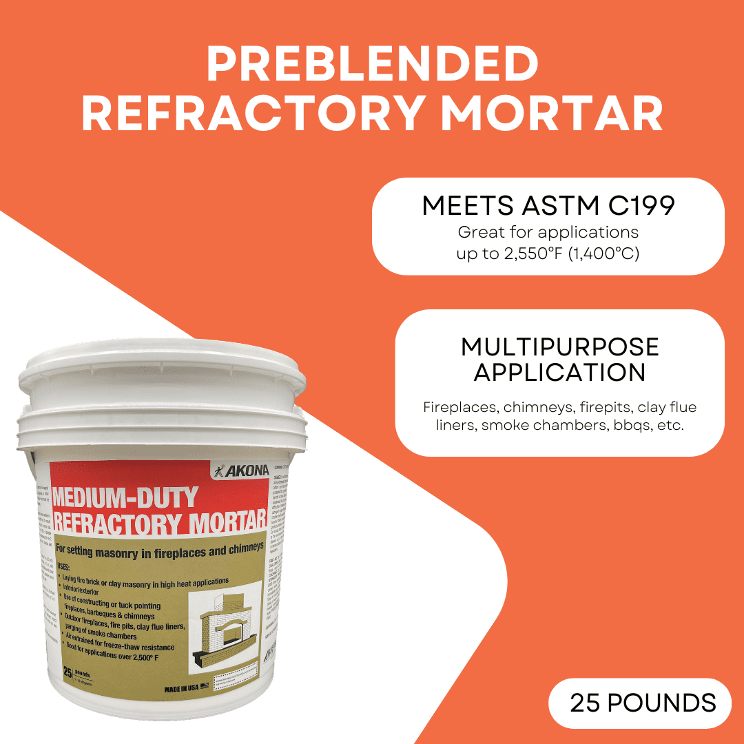 Akona Medium-Duty, Refractory Mortar Mix 25 Pound