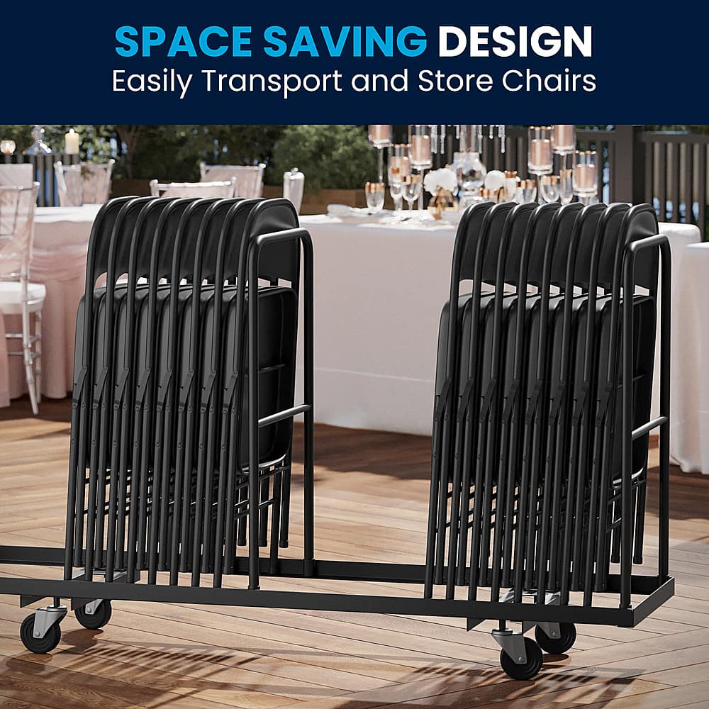 It features a premium 18 gauge, steel frame. The legs are double braced, with an integrated footrest. Though lightweight and easy to fold, transport and store, it’s sturdy enough to hold up to 225 pounds. Non-marring floor glides on the legs protect your floors from scuffs and scrapes by sliding smoothly when you need to move the chair.