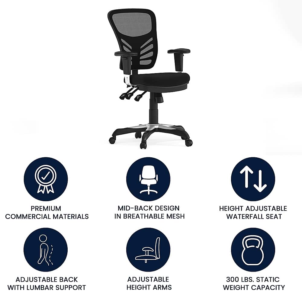 Get your work demands down to a minimum and produce your best work on this multifunctional swivel office chair. This chair comes fully loaded to help you take charge of your day. With a ventilated mesh back, you’ll have air circulating to your back giving you sweet relief during warm summer days.