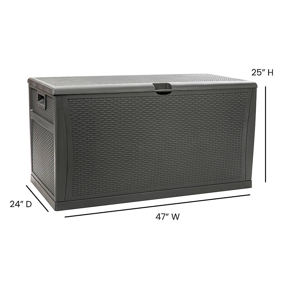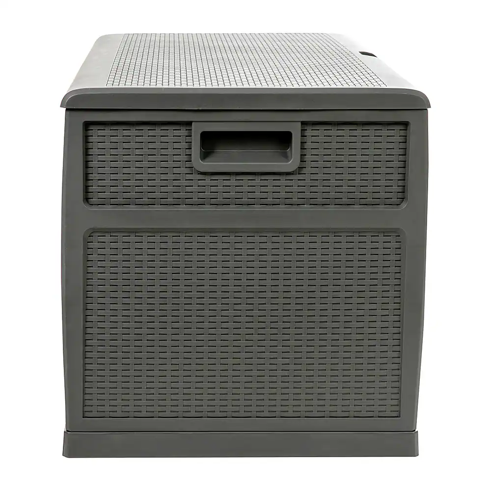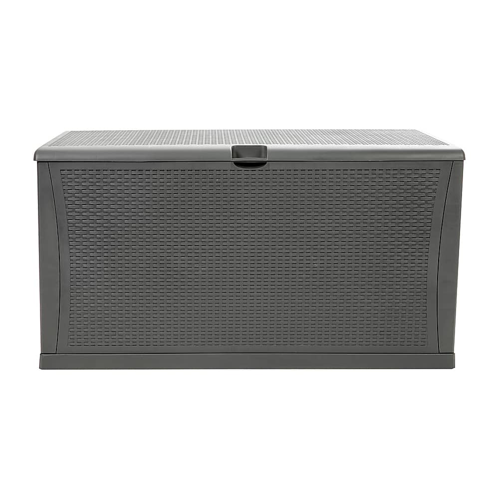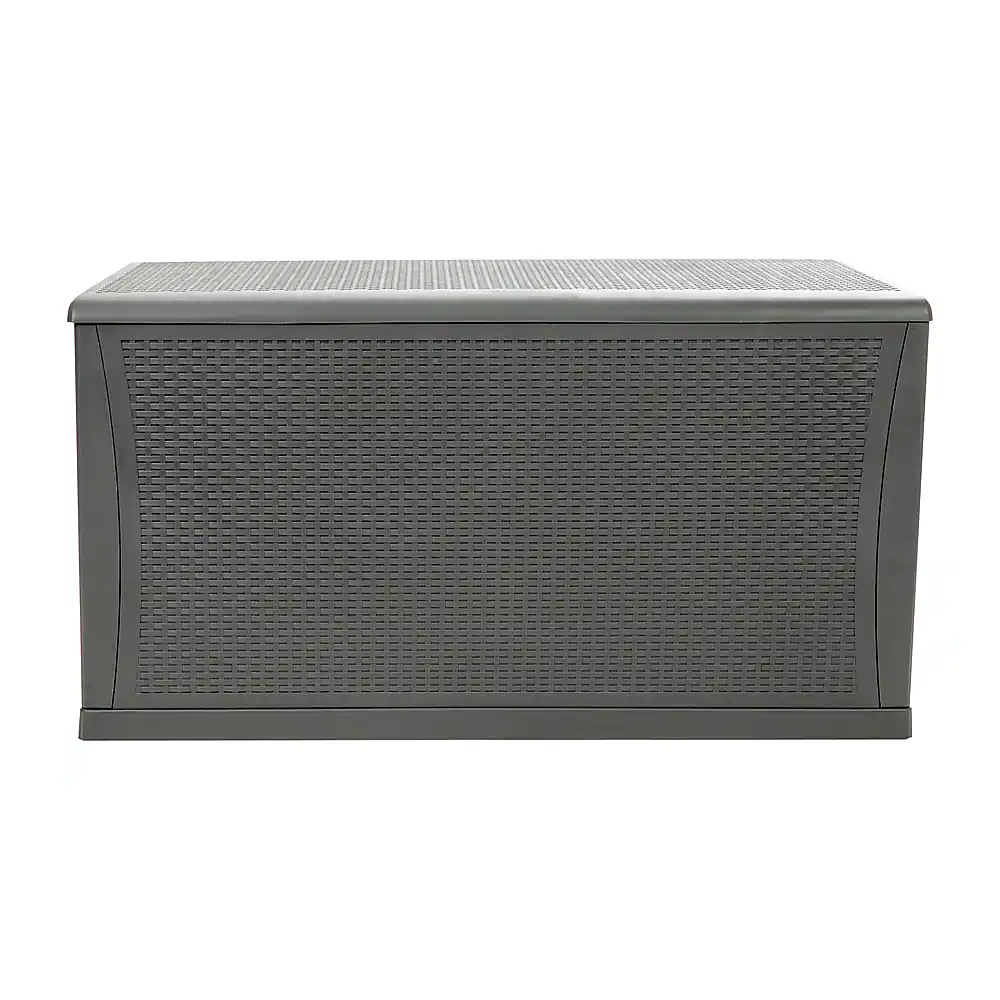 Unclutter your space and quickly find what you’re looking for when you organize all of your deck, patio, and backyard items in this 120 gallon plastic deck box. The woven motif mimics wicker and can blend seamlessly in any environment while the chest design can provide extra seating up to 180 lbs static weight capacity. An included floor panel helps this deck storage box protect your chair cushions, garden tools, or your children’s toys from the elements when not in use. This multipurpose storage box can also be used indoors for storing extra linens, out of season clothing, or in the garage for extension cords, life jackets, and other miscellaneous items that always seem to find their way to the garage.