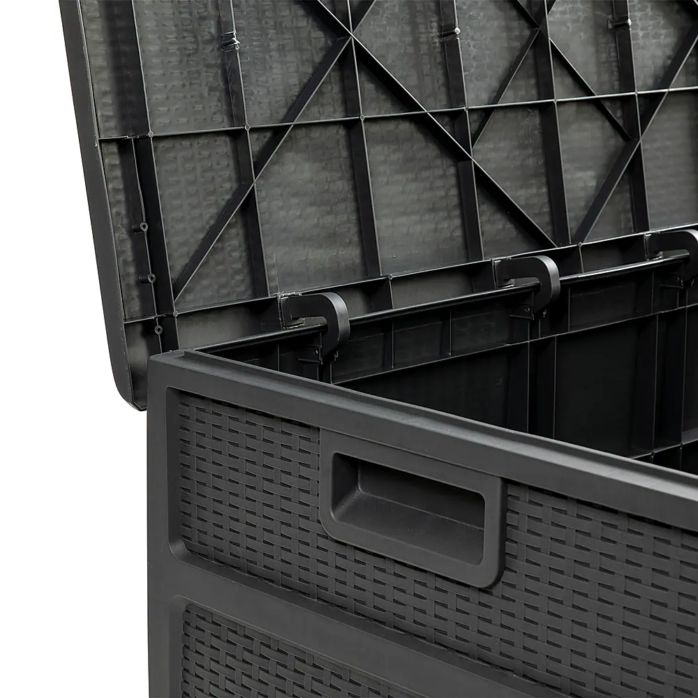 Thoughtful storage solutions help your indoor or outdoor space regain an organized appearance to create a calm, restful atmosphere. Constructed of durable polypropylene, the weatherproof body allows rainwater to shed without reaching your belongings and will hold up to -4 degrees without cracking. Although the product material is waterproof, there may be gaps due to assembly. Do not store objects that may be damaged by moisture. Fade, dent and rust resistant, this heavy duty outdoor storage deck box will hold up to 220 lbs. weight capacity.