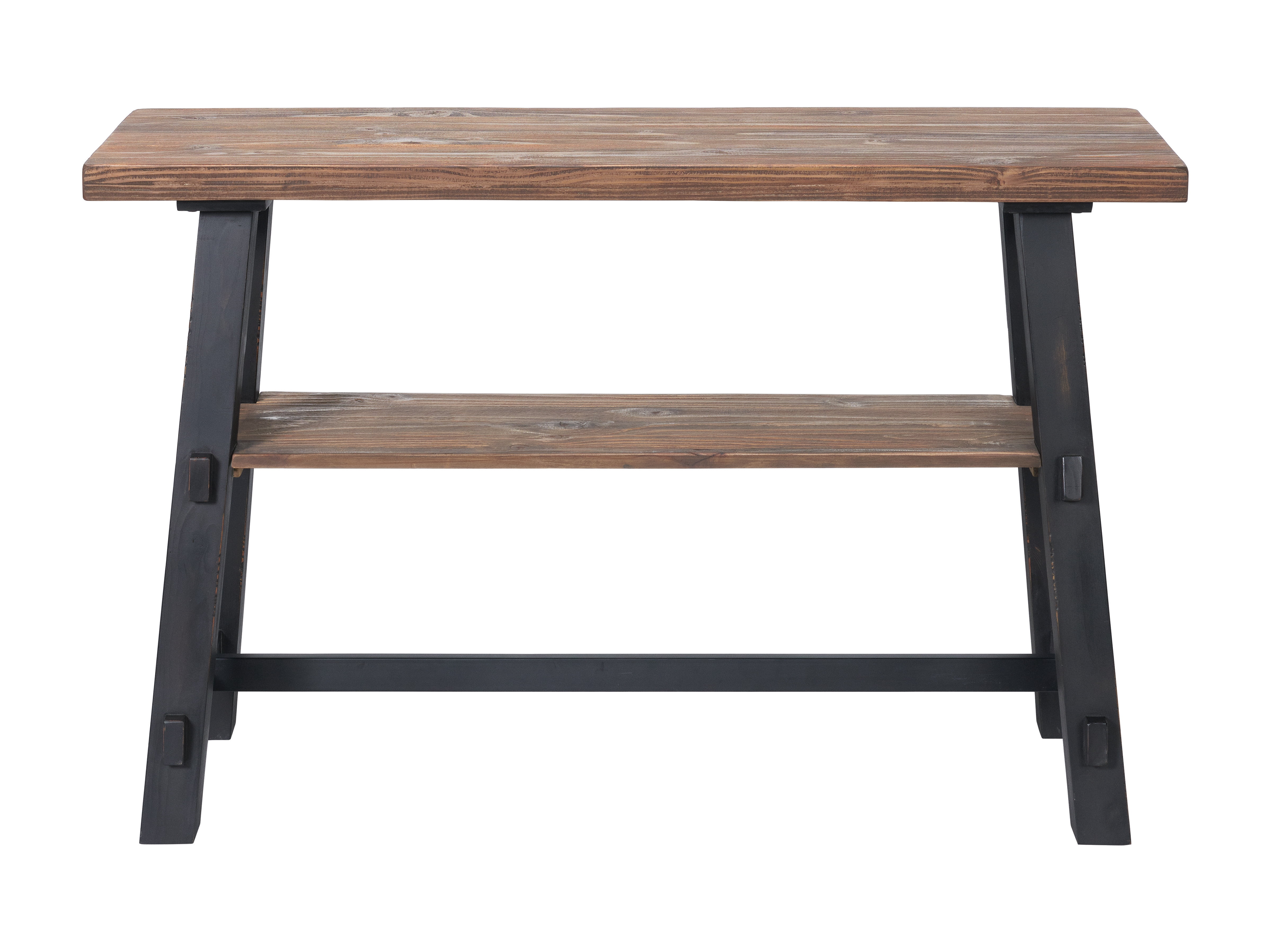 Add a unique touch to your home with this collection. The lightly distressed black sawhorse leg design gives it a rustic, yet industrial feel. The solid wood top has a natural finish that features unique markings from the wood grain. This collection is sure to make a statement in your home. Constructed of solid wood.