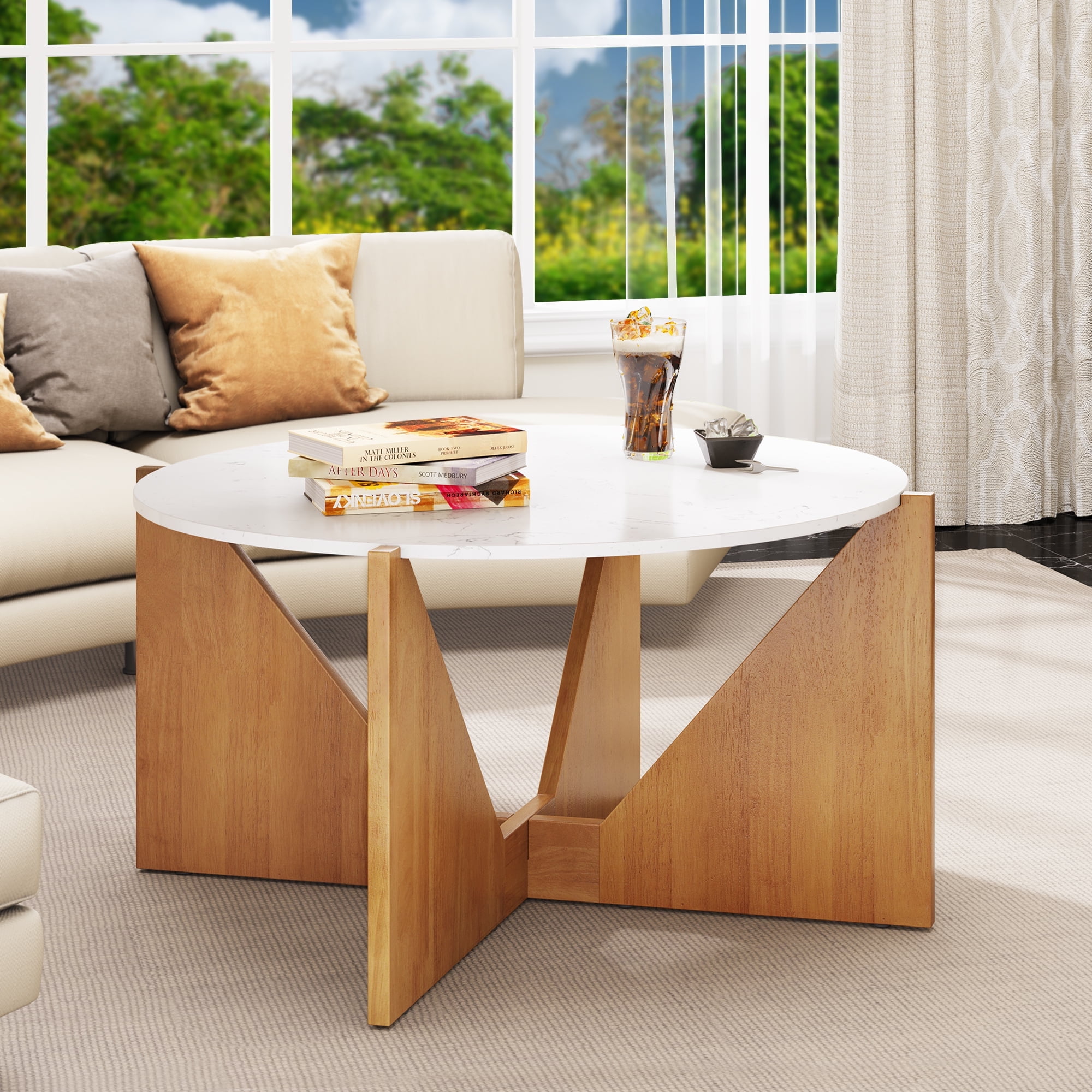 Alaterre Furniture Arcadia Acacia Wood 42″ Round Coffee Table with Nesting Tables, Industrial Style Includes Four Wedge-Shaped Stowaway Tables, Antiqued Mocha