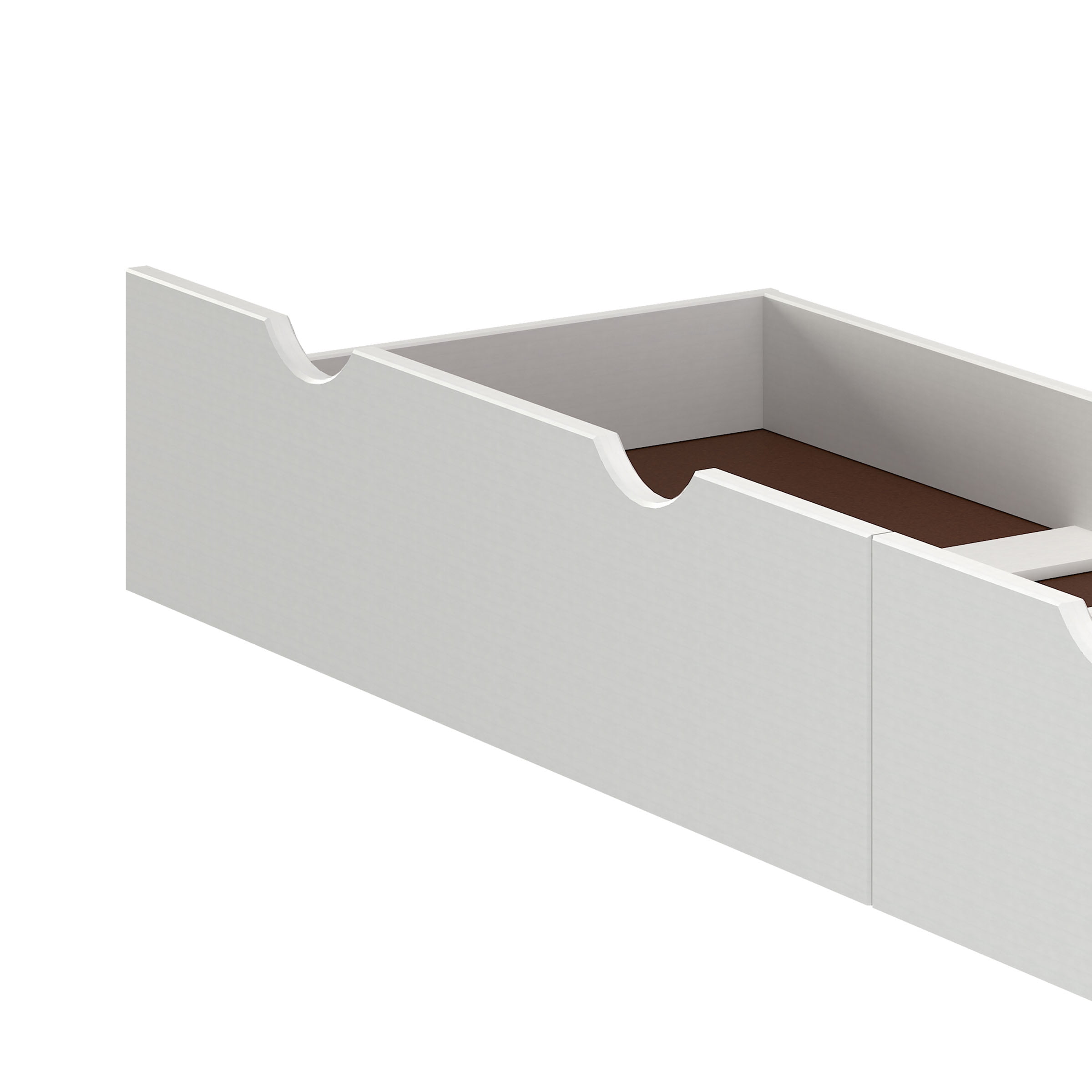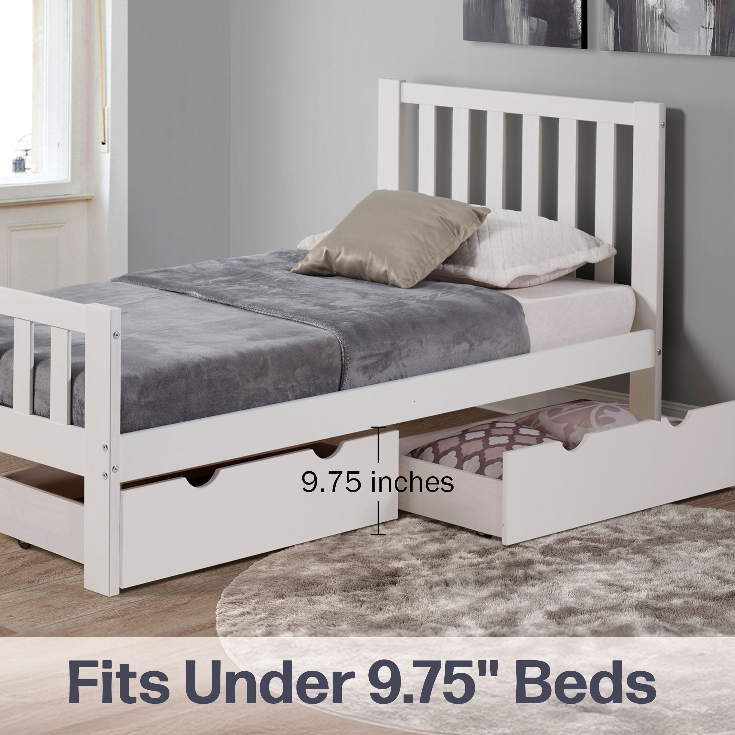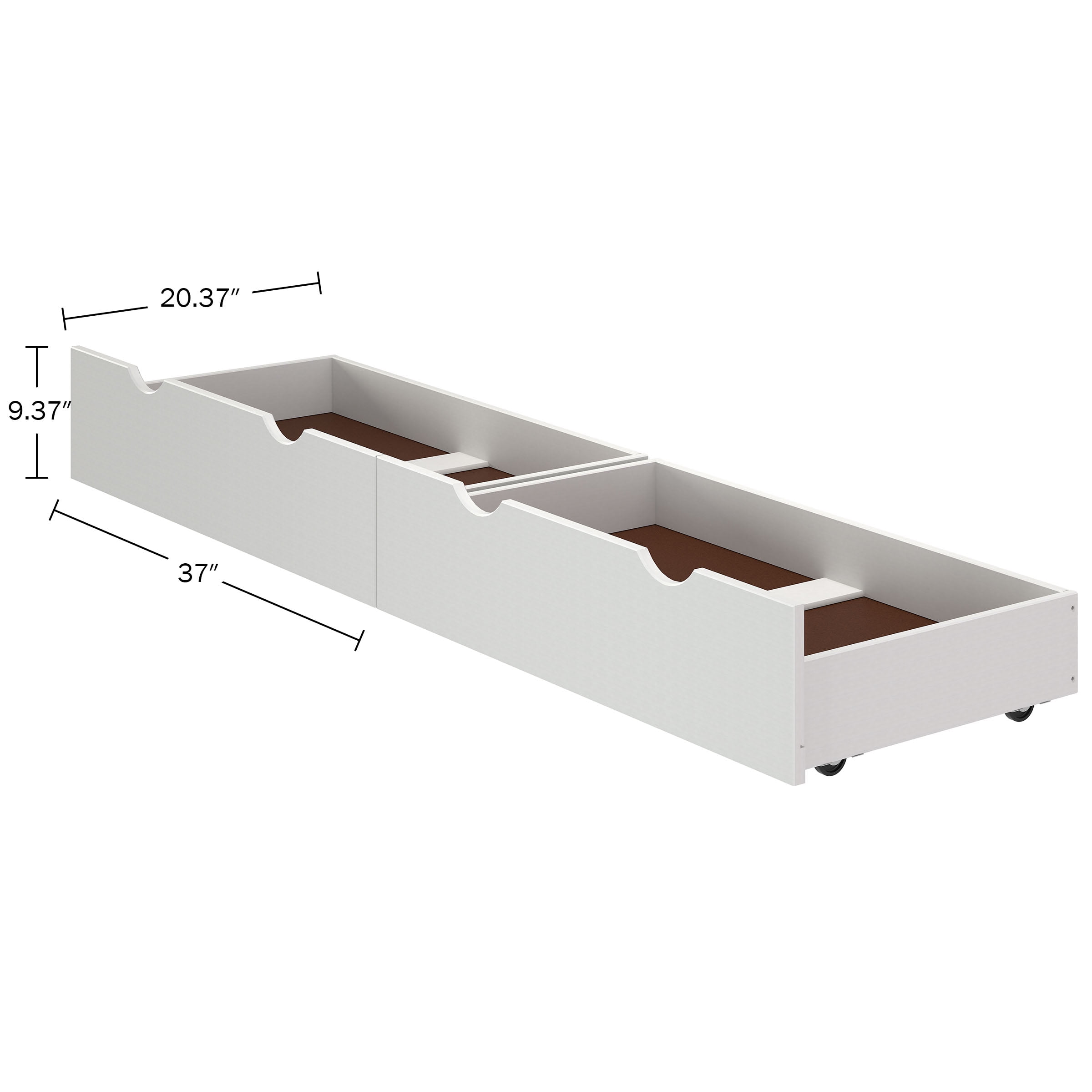 The Alaterre Furniture Set of 2 Underbed Drawers are perfect for organizing and storing away any of your out of season clothing or belongings in smaller spaces The drawers come on wheels so you can easily access larger items or multiple items with one quick motion. Each drawer is separate, giving you the ability to store different items in each one Constructed from wood, these drawers are designed with durability and style in mind, so you don’t need to worry about compromising on space or quality The White Wood Underbed Storage Drawers fit under bed frames 9.75 inches high, perfect for storing clothing or personal items, with wheels for easy access Whether you’re looking to add traditional, rustic, farmhouse, or any other type of décor to your room, there are multiple finishes these drawers come in to match any current room design