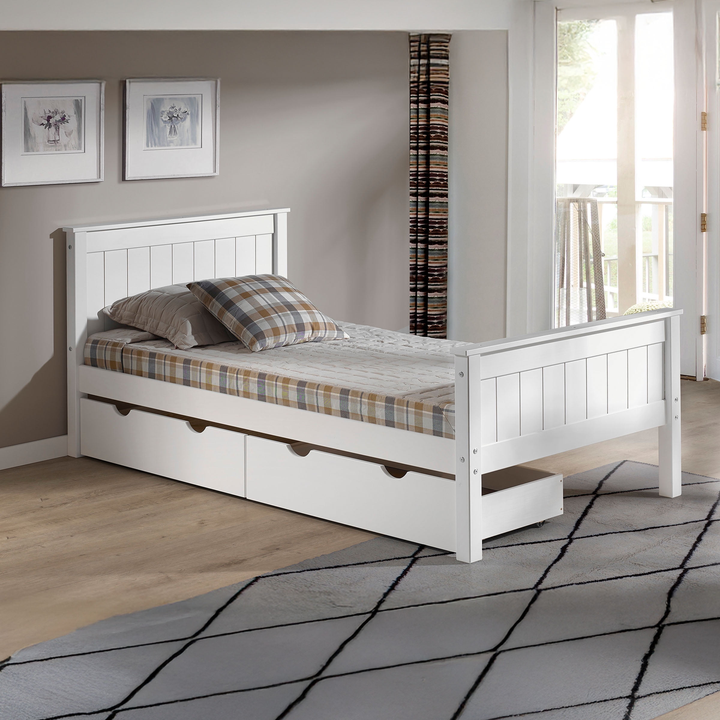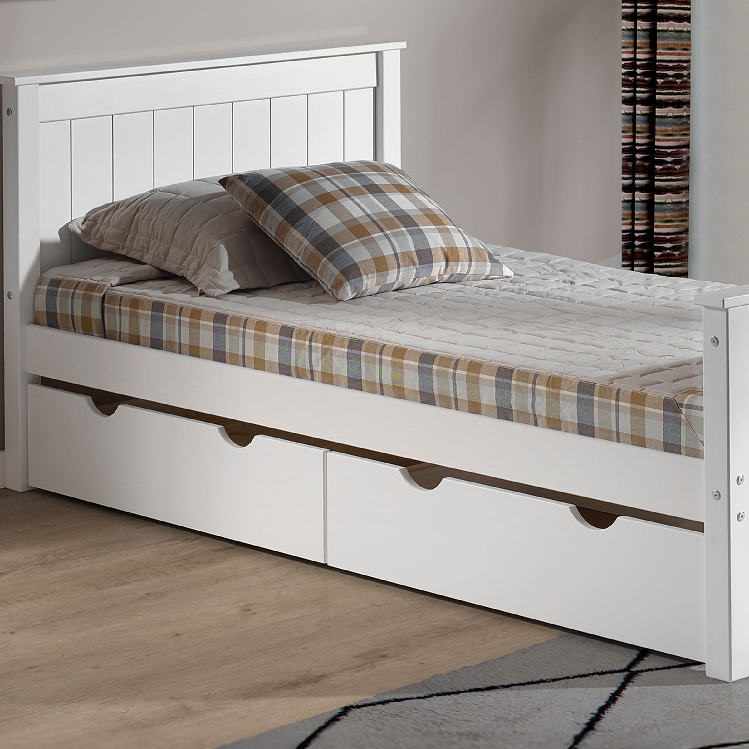 Alaterre Furniture Aurora Set of 2 Pine Wood Underbed Storage Drawers on Wheels, Bedroom Dresser Organizer Shelf, White
