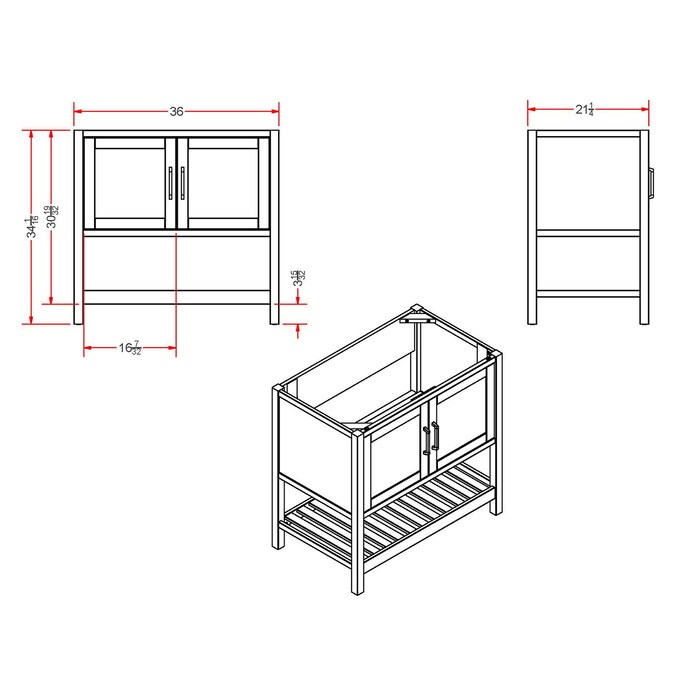 - Overall dimensions: 36in W x 21 1/4in D x 34in H