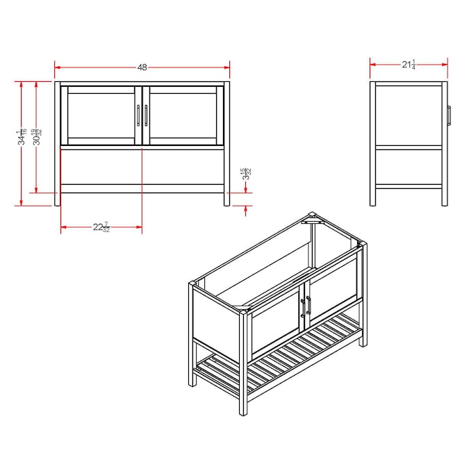 - Overall dimensions: 48in W x 21 1/4in D x 34in H