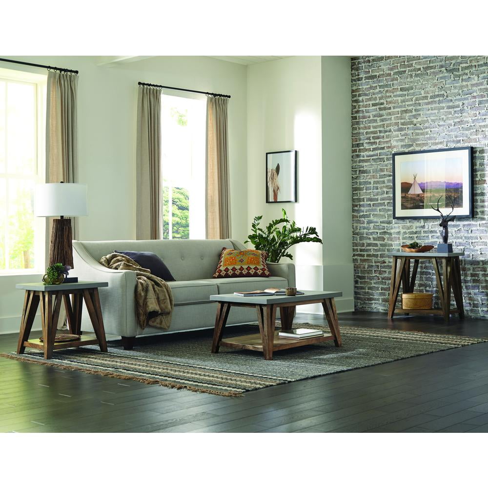 Decorate your living space with our Alaterre Brookside 22″W Wood and Concrete-Coated Top Wood End Table, featuring a new innovative construction. Modern, industrial Concrete-coated-topped table with solid wood base and shelf will offer a fresh new look to your living room. We see this collection in a modern city loft or a transitional living room that needs just a pop of updated style. Our Brookside Collection includes end tables, coffee tables, console/media tables, dining/entryway benches, stools and entryway coat hooks, and coordinates with many decorating styles.
