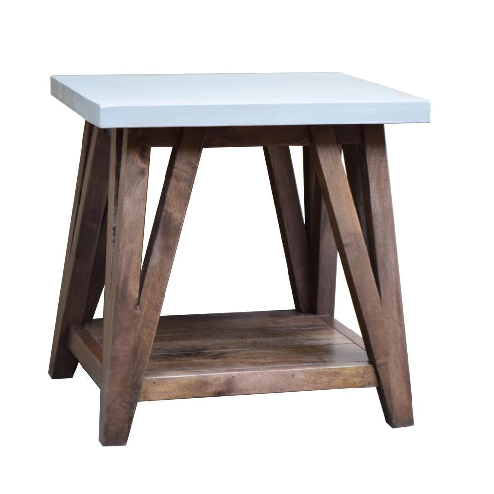 Alaterre Furniture Brookside 22″W Wood and Concrete-Coated Top Wood End Table