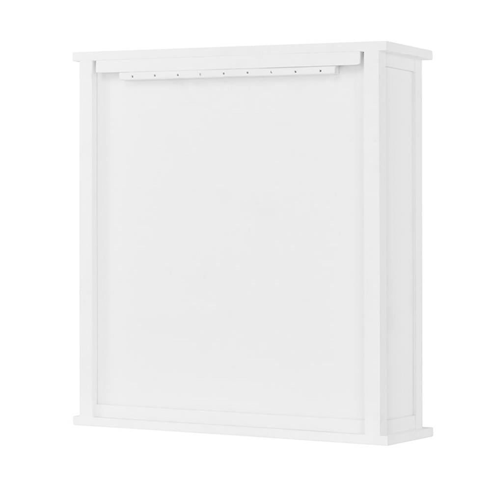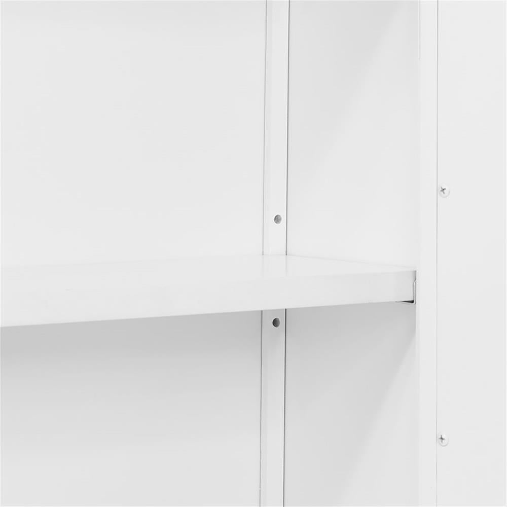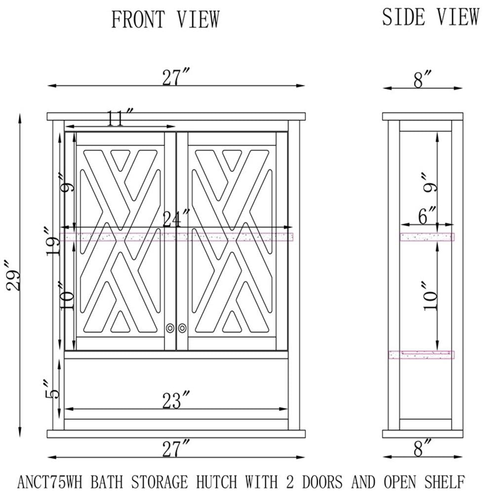 Wall mounted storage cabinet dimensions: 27″ W x 8″ D x 29″ H Two door cabinet discreetly stores toiletries and other bathroom essentials and the additional exposed shelf is ideal for displaying collectibles or offering easy access to frequently used items Adjustable, interior shelf so you can customize placement for taller items