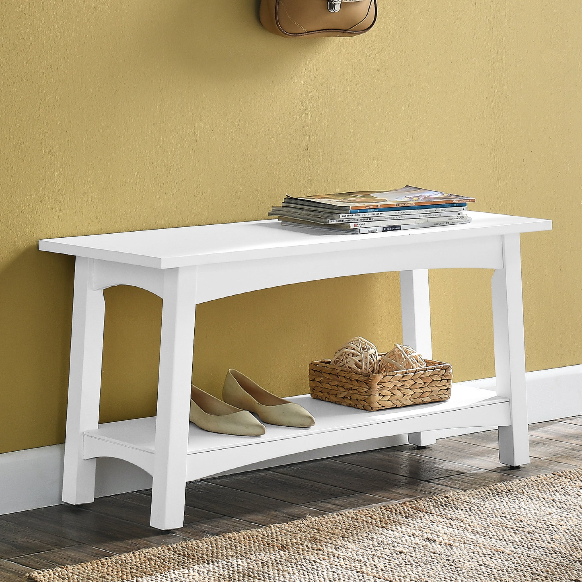 TRADITIONAL/MODERN DESIGN – Add style to your entryway, dining room, living room, or den with this classic wood bench from Alaterre Furniture’s Craftsbury Collection; perfect for a variety of decors from traditional to modern 2 PERSON DESIGN – Roomy enough to accommodate two people, this bench also features a convenient storage shelf for shoes, bags, and more DIMENSIONS – The shelf dimensions are 29 3/4″W x 8 1/2″D x 10 1/4″H and seat dimensions are 36″W x 14″D EFFORTLESS SETUP – Quick and simple assembly without the need for power tools; includes clear, step-by-step instructions to ensure stress-free setup, making it ideal for busy households looking to enhance their living spaces swiftly QUALITY CRAFTSMANSHIP – Crafted from solid wood for lasting durability and strength, this bench brings lasting style and comfort to your home