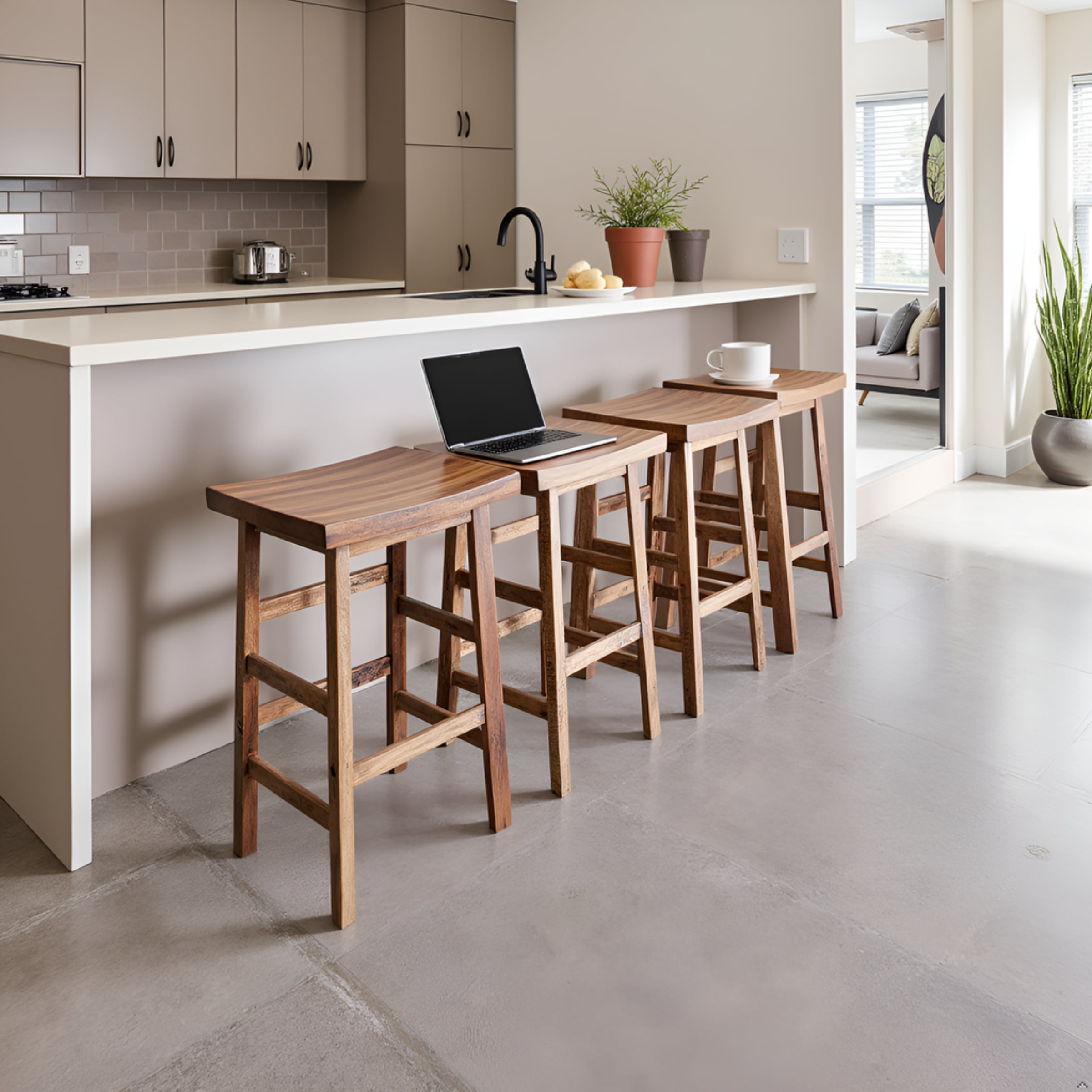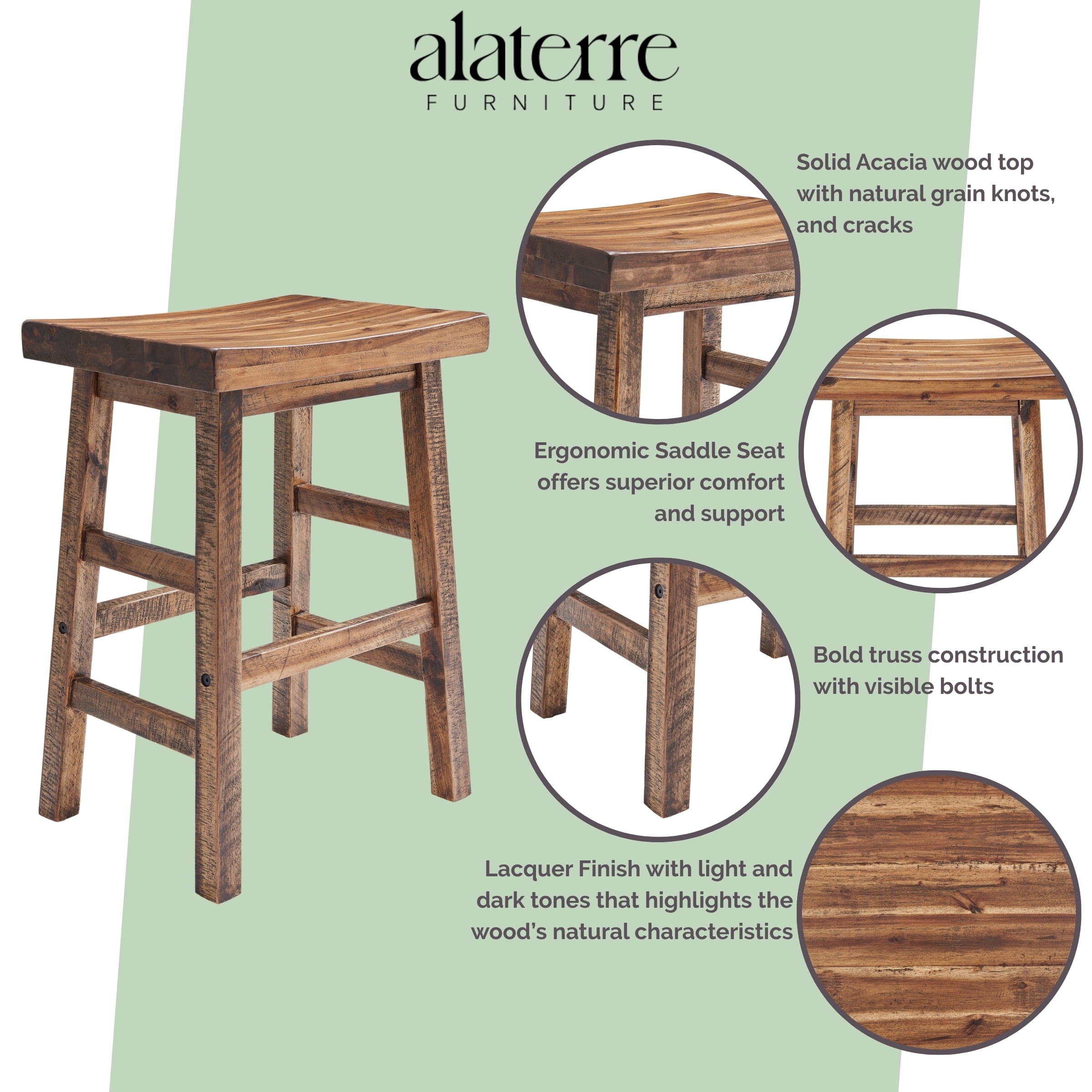 Alaterre Furniture Durango 26-Inch Tall Industrial Wood Counter-Height Stool Bar Stool, Kitchen, Seating, Vintage-Style Saddle Seat, Natural