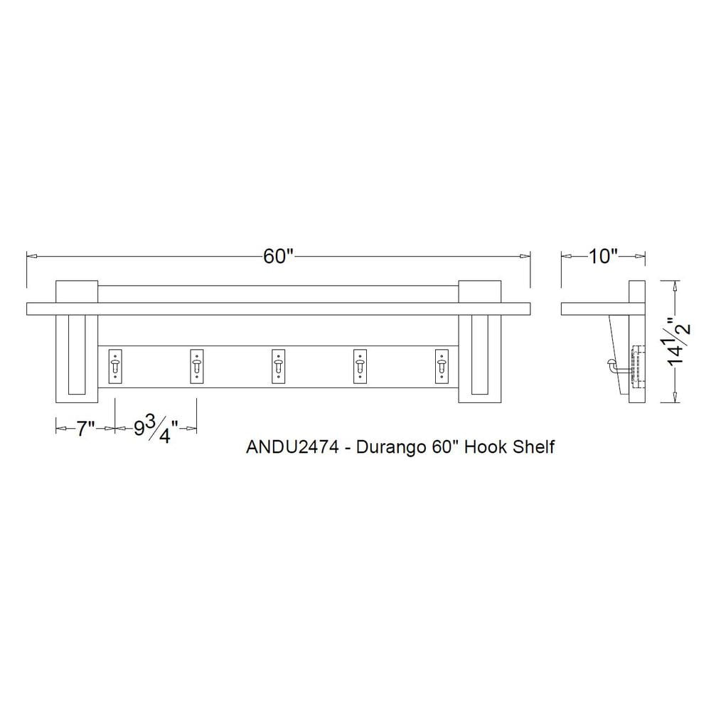 [DURABILITY] Our Alaterre Furniture Durango 60″ L Industrial Wood Coat Hook Entryway Shelf is designed to provide you lasting use, with a weight capacity of 100lbs if installed as per instructions [INDUSTRIAL WOOD AND FINISH] Crafted with industrial wood and a natural lacquer finish, this accent furniture adds rustic, farmhouse, and industrial appeal to living rooms, mudrooms, or entryways, showcasing the wood’s natural character [FUNCTION AND DESIGN] The 60″ coat hook shelf provides ample space for organization with nine hooks spaced 9.75″ apart, offering a stylish yet practical solution for keeping your entryway tidy [SPACE-SAVING DESIGN] This Alaterre Furniture Durango coat hook shelf measures 60″ W x 10″ D x 14.5″ H, maximizing storage without overwhelming your entryway, ideal for keeping essentials organized and accessible [DIMENSIONS] This coat hook shelf measures 60″ W x 10″ D x 14.5″ H, providing plenty of storage space while taking up minimal floor area