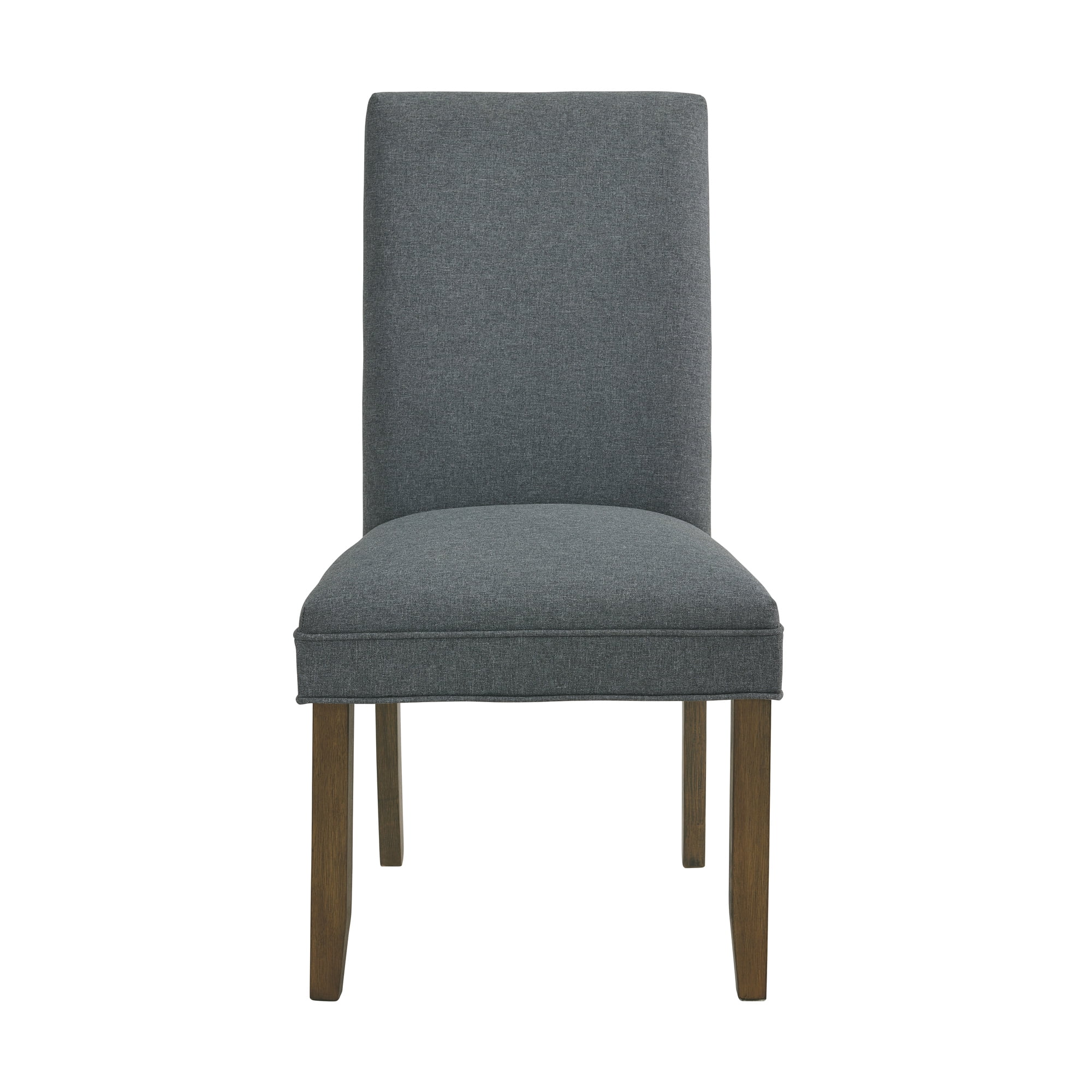 Add style and elegance to your dining room with this set of two parsons chairs. The transitional style and neutral tones of these classic chairs are perfect to build a look around, or pair with your existing décor. The high backs and fabric upholstery give them a timeless look. The foam-padded seat and subtly curved back provide contoured support for lasting comfort. Enhance your dining room and create the perfect dining experience! Features: Set includes two armless dining chairs Constructed from sturdy, long-lasting rubberwood Polyester fabric has a linen like texture Wood legs in brown stain finished with a wire brush technique Wipe clean with damp cloth, spot treat stains Specifications: Dining Chair Dimensions: 20.5″ W x 27″ D X 38.5″ H Seat Height: 20.5″ Seat Dimensions: 20.5″ W x 18″D Weight Capacity: 250 lbs.