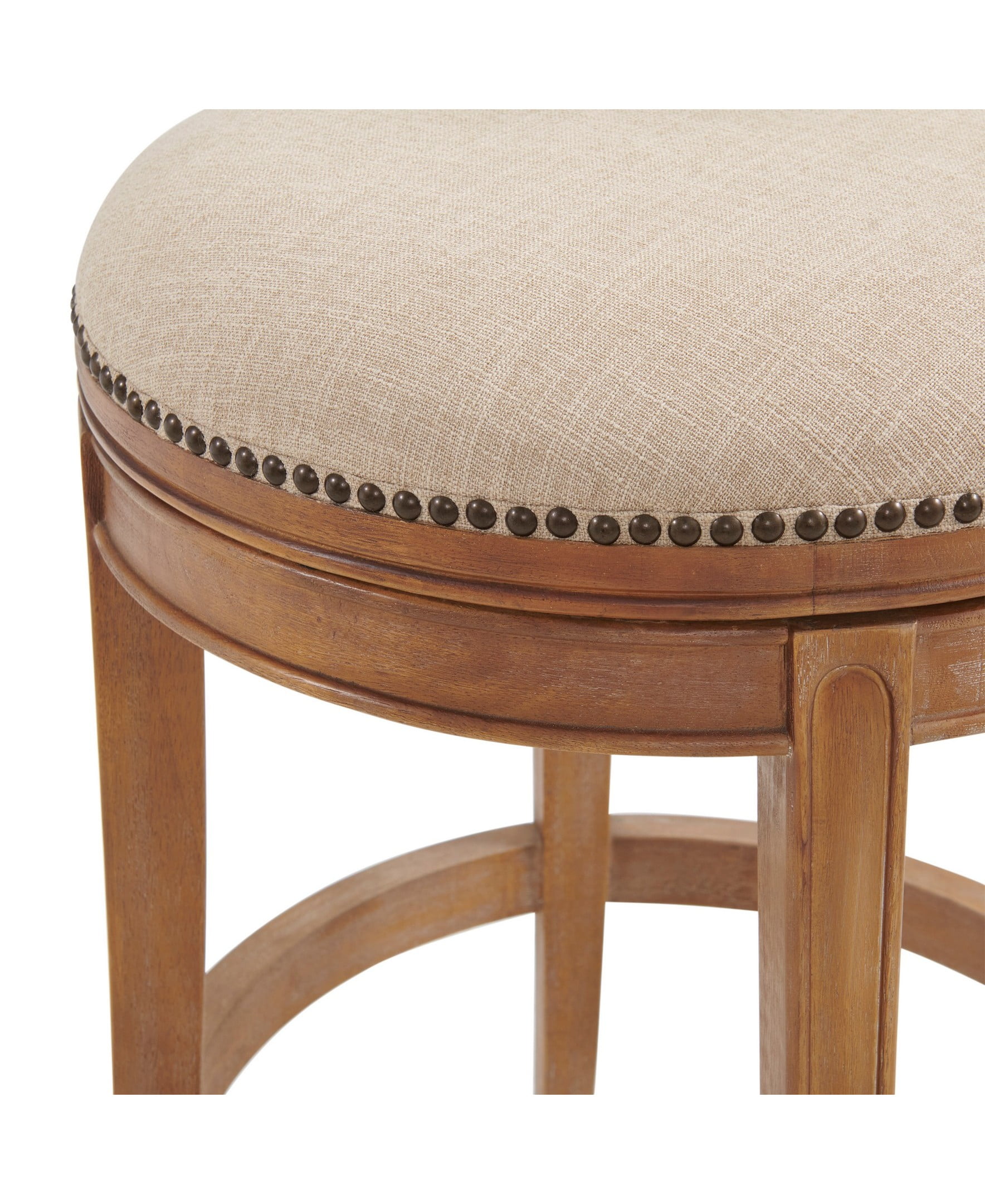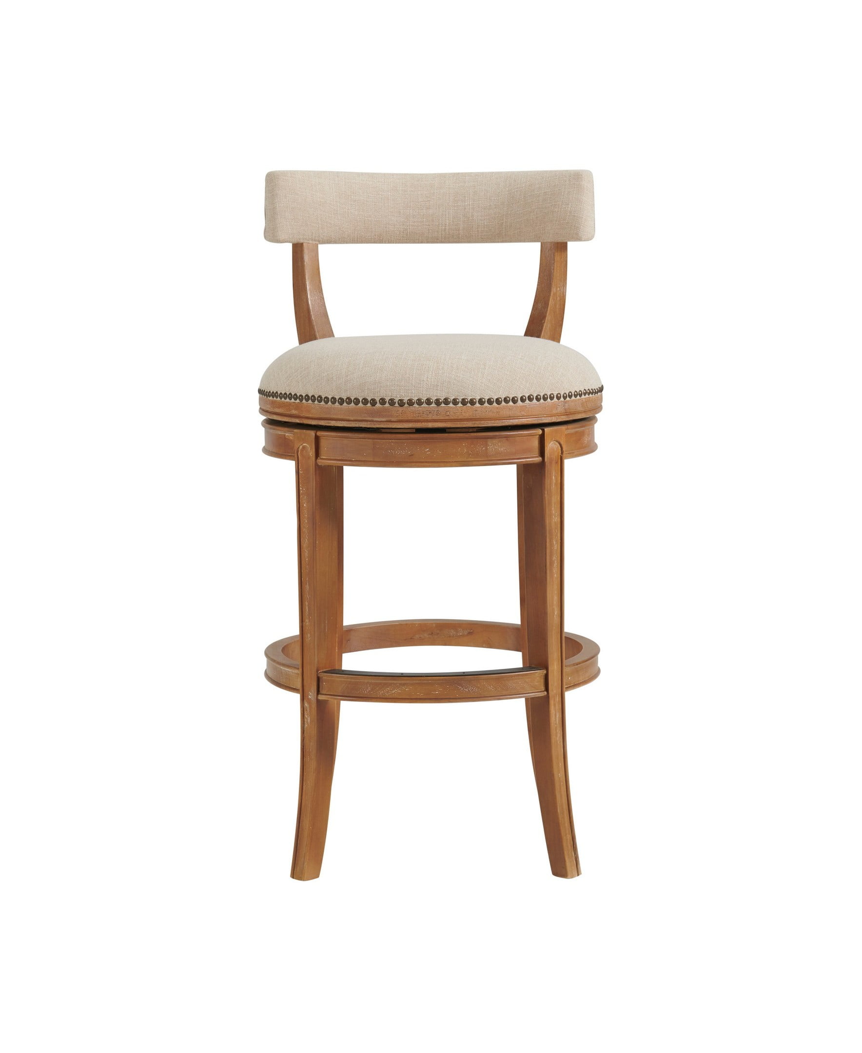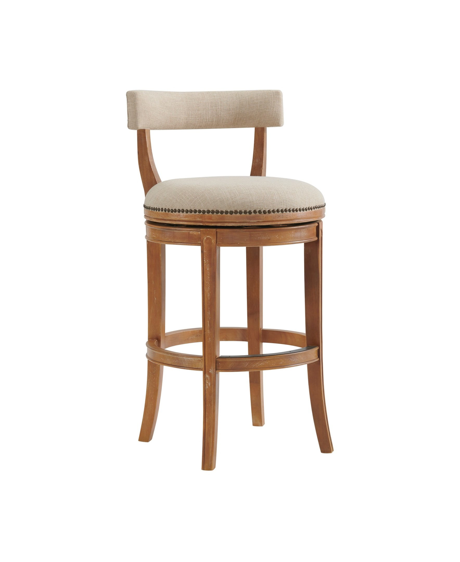 Add a stylish focal point to your dining area with this counter height bar stool. The sturdy rubberwood frame is complemented by faux linen upholstered seat and back with nail head trim detail. The seats are foam padded, and chair backs are curved to encourage hours of comfortable seating. This bar stool features a steel memory return-swivel mechanism, bringing your stool to its original position after removing static weight.