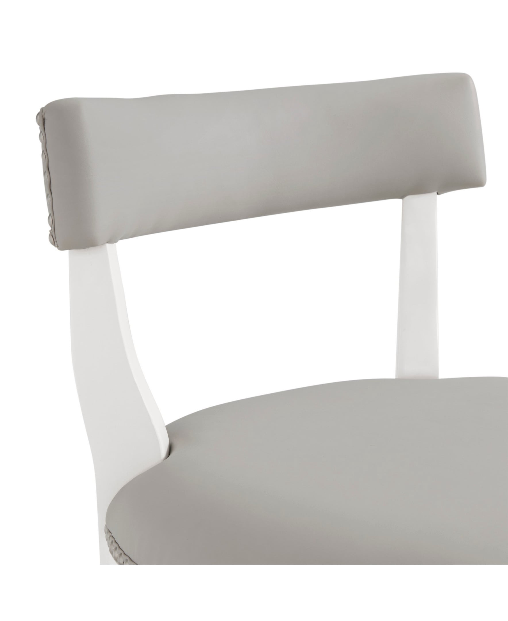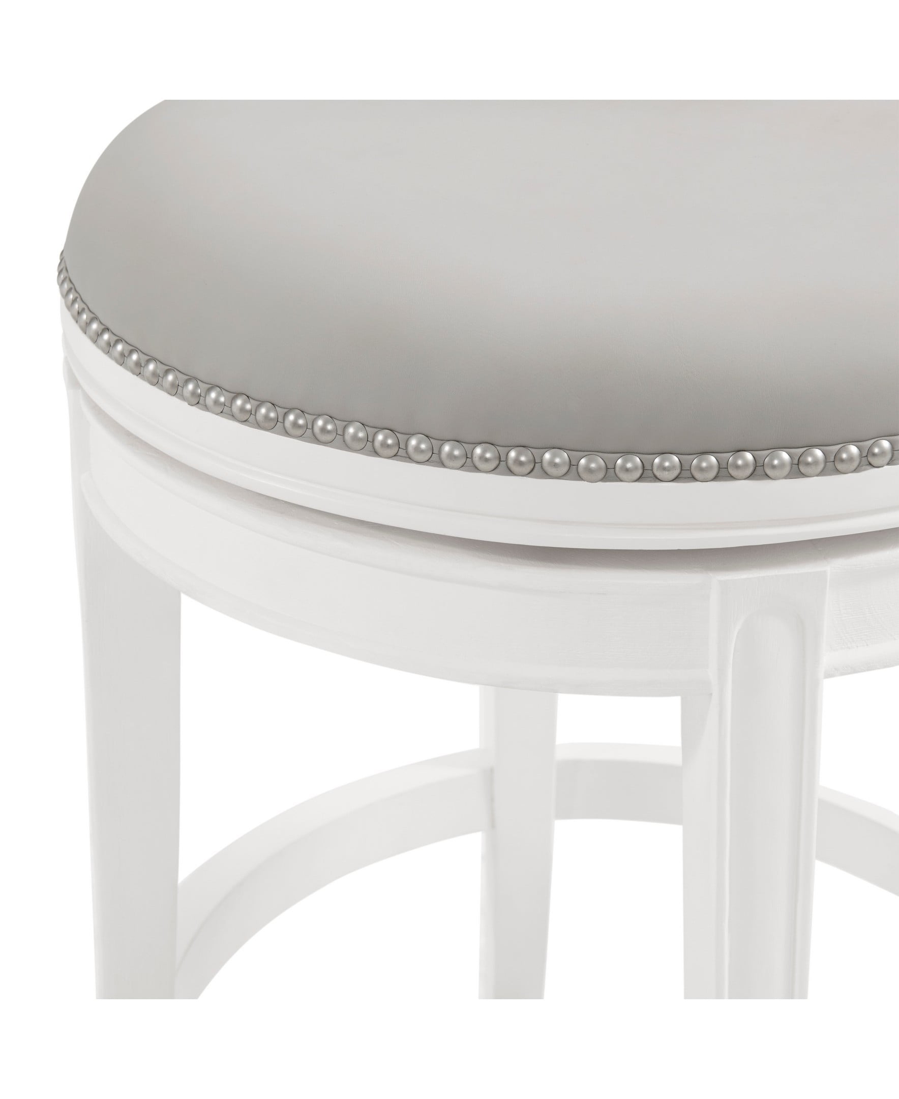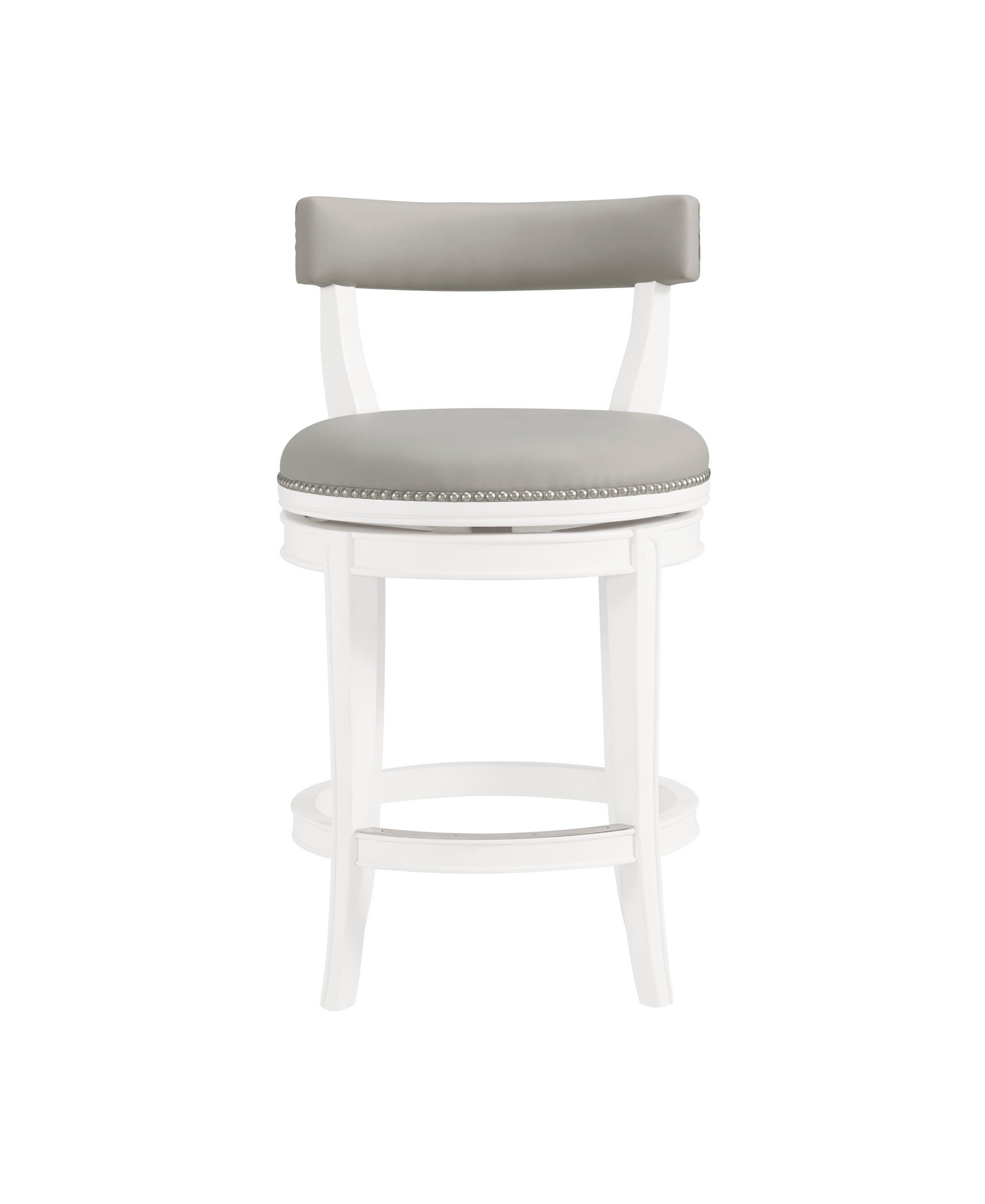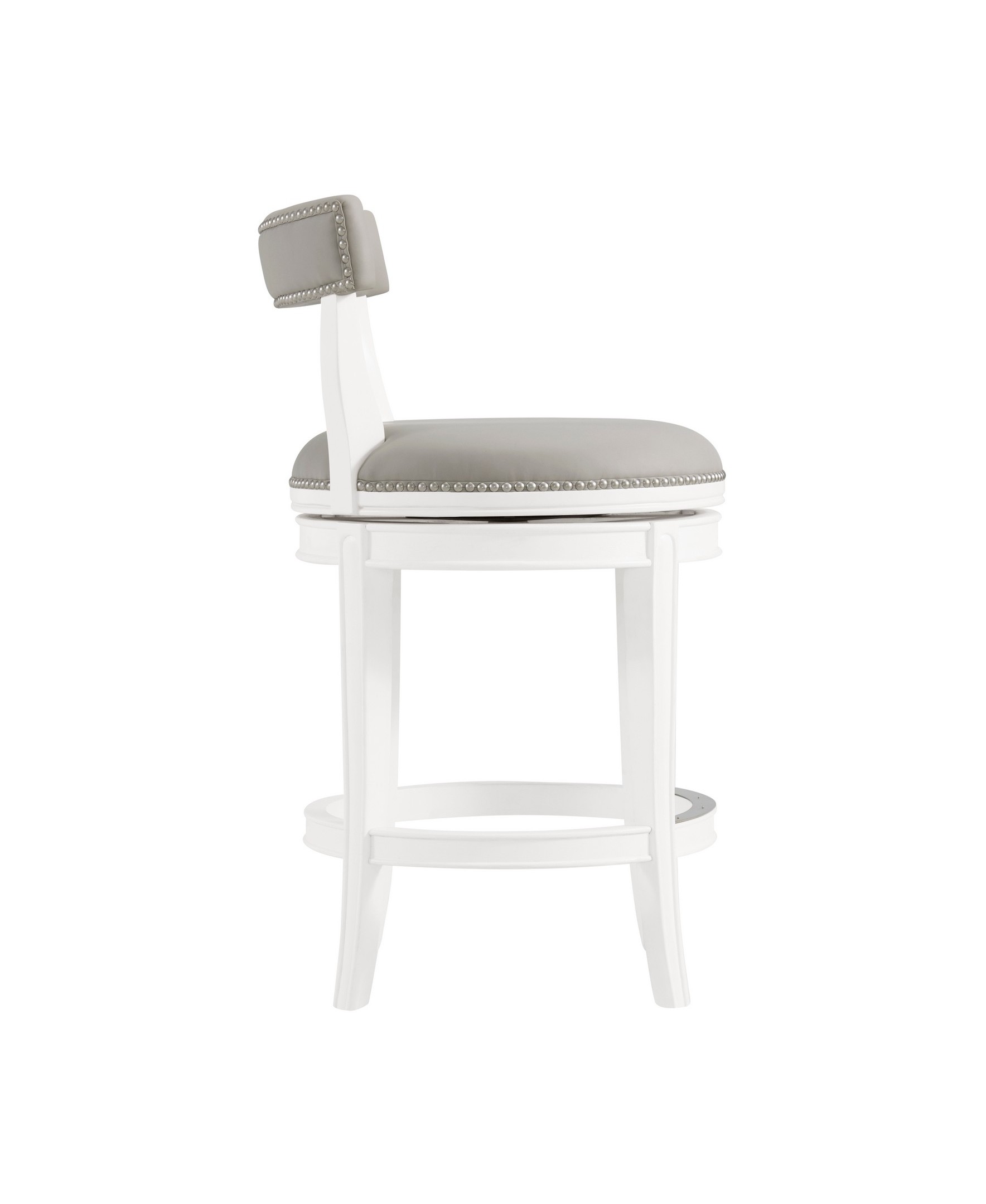 [COMFORT AND STYLE] Features a plush, foam-padded seat and back upholstered in faux leather with elegant nailhead trim; the curved back design enhances comfort, making it ideal for extended seating in kitchens, dining areas, or bars [SWIVEL AND RETURN FUNCTIONALITY] Equipped with a steel memory return swivel mechanism that smoothly rotates and returns the stool to its original position; ideal for bar and counter settings where easy guest interaction is key [ROBUST AND DURABLE CONSTRUCTION] Crafted from solid rubberwood, known for its strength and longevity; ensures stability and durability for daily use in your home’s dining or bar area [ADJUSTABLE AND VERSATILE DESIGN] Available in both bar and counter heights; easily adjust to fit your space whether in a kitchen, dining room, or bar setting; choose from chic white and gray or the classic weathered brown and beige to match your decor [OPTIMAL DIMENSIONS FOR COMFORT] This counter-height chair features dimensions of 20″ W x 22″ D x 37″ H, with a seat height of 26″. It’s ideal for kitchen islands, bars, and dining areas, offering comfort and usability