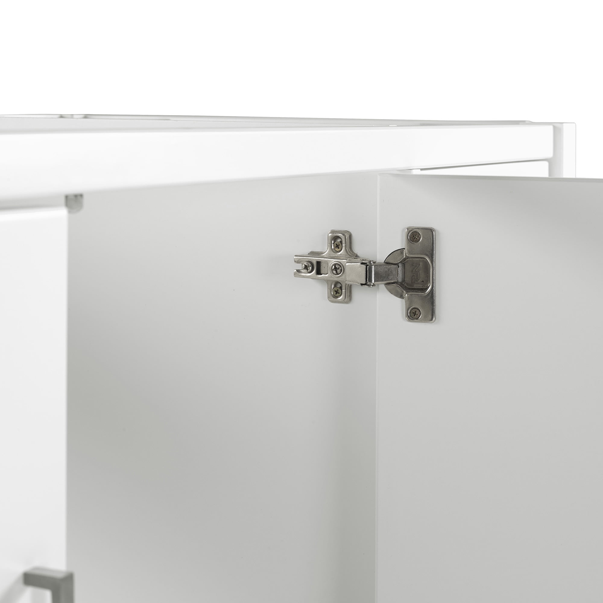Bring beauty to your bathroom with this timeless vanity cabinet. This design combines traditional and modern influences with its clean-lined frame crafted from solid pine and composite wood. The vanity features nickel pulls and hardware. The soft-close drawer is perfect for stashing washcloths, makeup, and other necessities, while an open shelf down below offers a space for towels or other bathroom accessories. Vanity top and sink are not included.