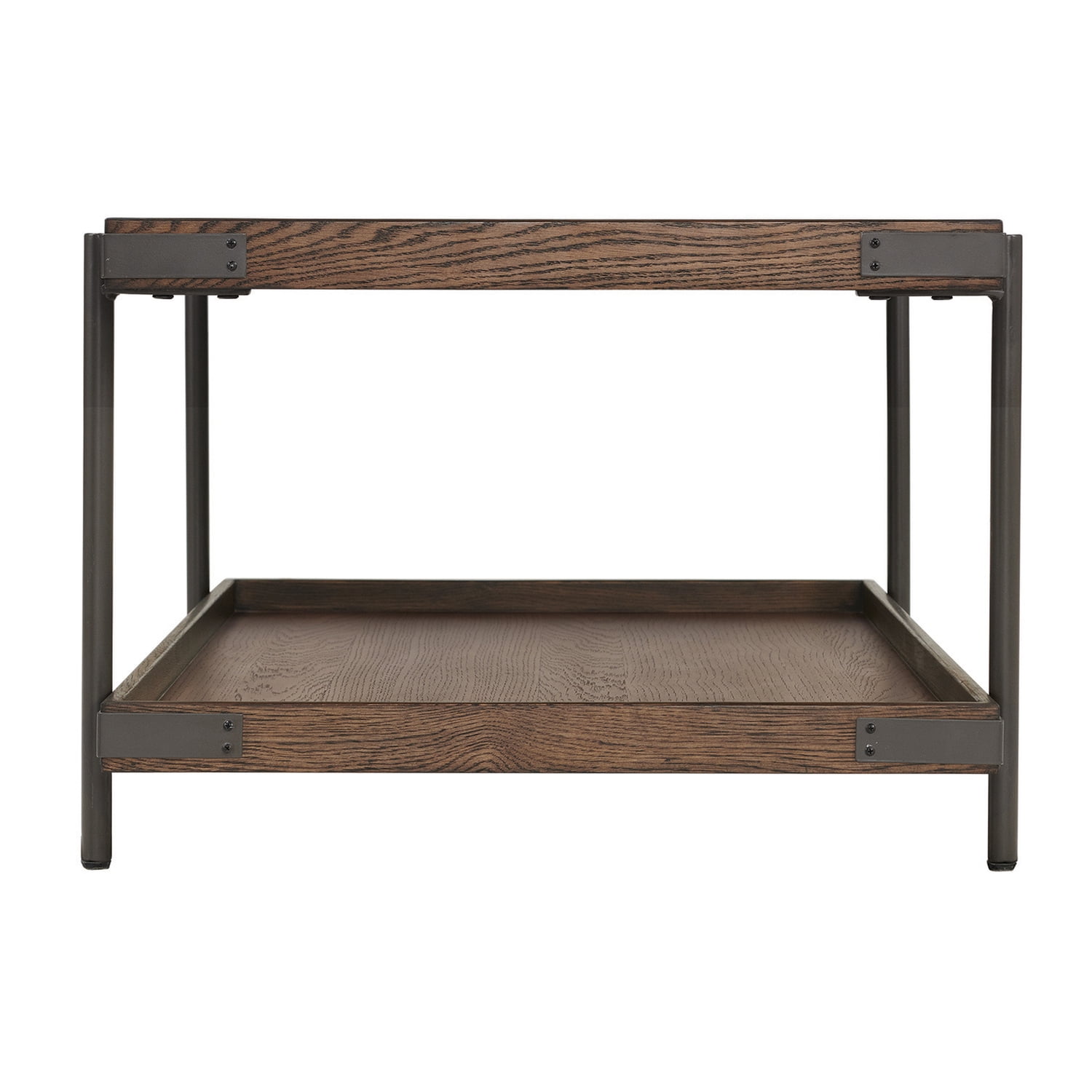 A perfect blend of rustic and industrial style, this beautiful collection will blend seamlessly in your living space. Featuring solid wood tray tops that are fixed in place with metal accents and metal legs. Mix and match to achieve your desired look. This gorgeous coffee table with shelf will be a perfect accent next to your sofa