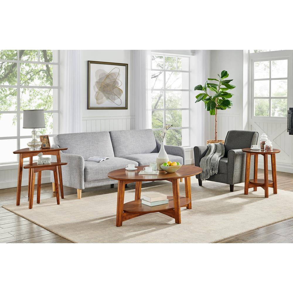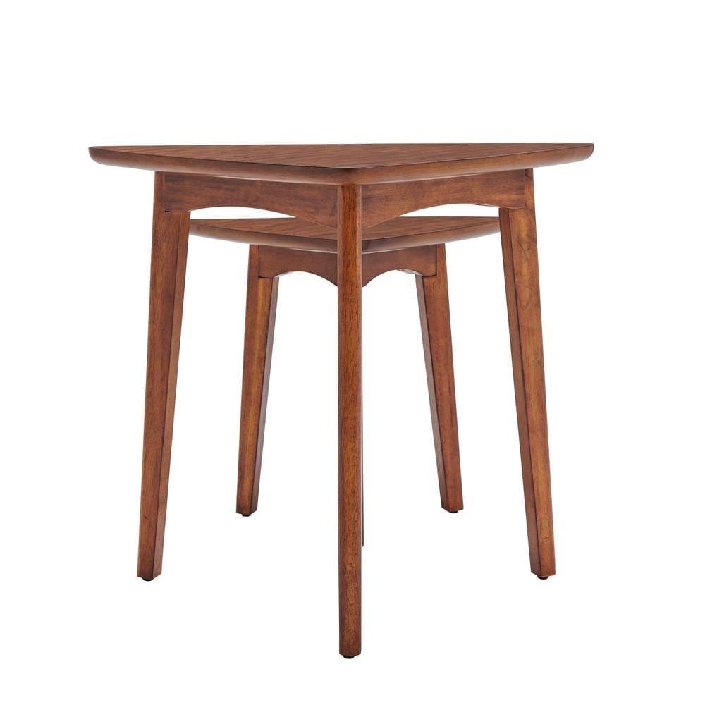 Alaterre Furniture Monterey 24″ Mid-Century Wood Triangular Nesting End Tables, Set of Two, Warm Chestnut