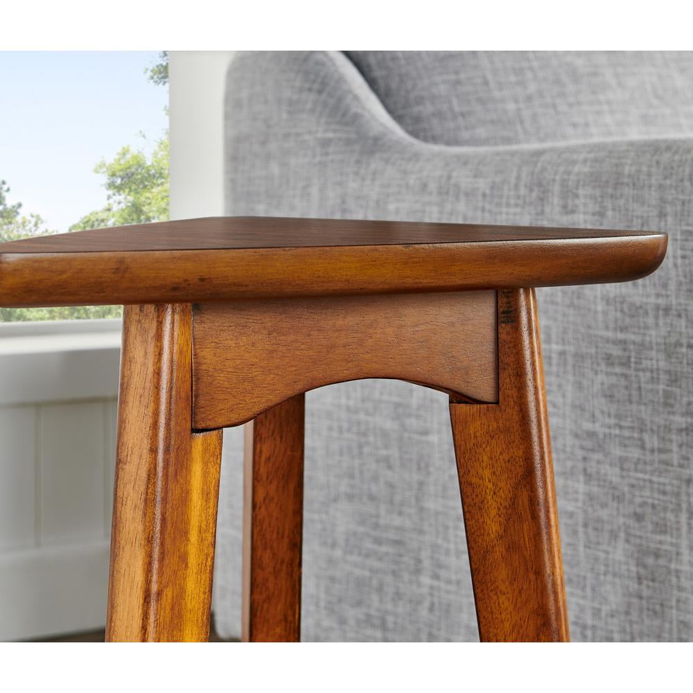 With our Alaterre Monterey 24″ Mid-Century Wood Triangular Nesting End Tables, Set of Two, Warm Chestnut, dare we say these tables are a modern take on mid-century modern design? With their tapered legs and warm chestnut finish you will have the perfect accent to update your living space. These two uniquely triangular nesting tables will have your friends think they have stepped onto a movie set with how stunning they are. Decorate this table set with faux plants or your favorite photos; these tables will be sure to add the finishing touch to your space.