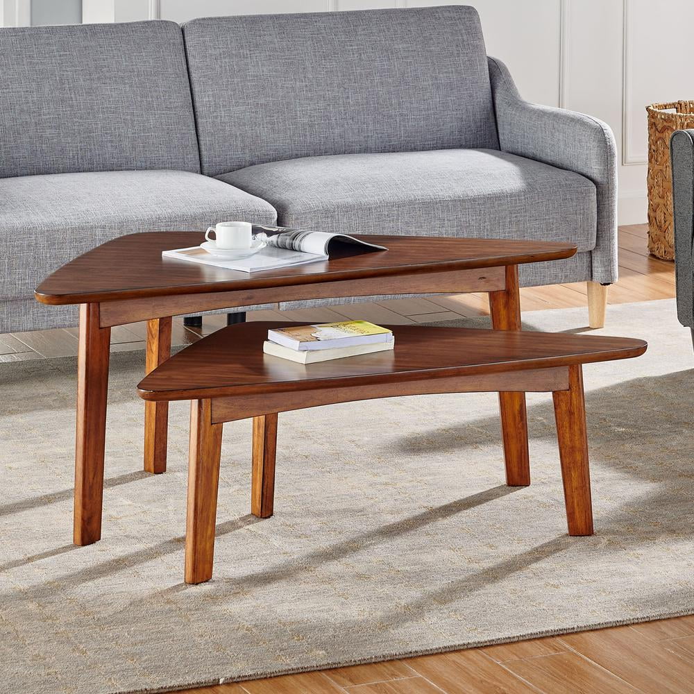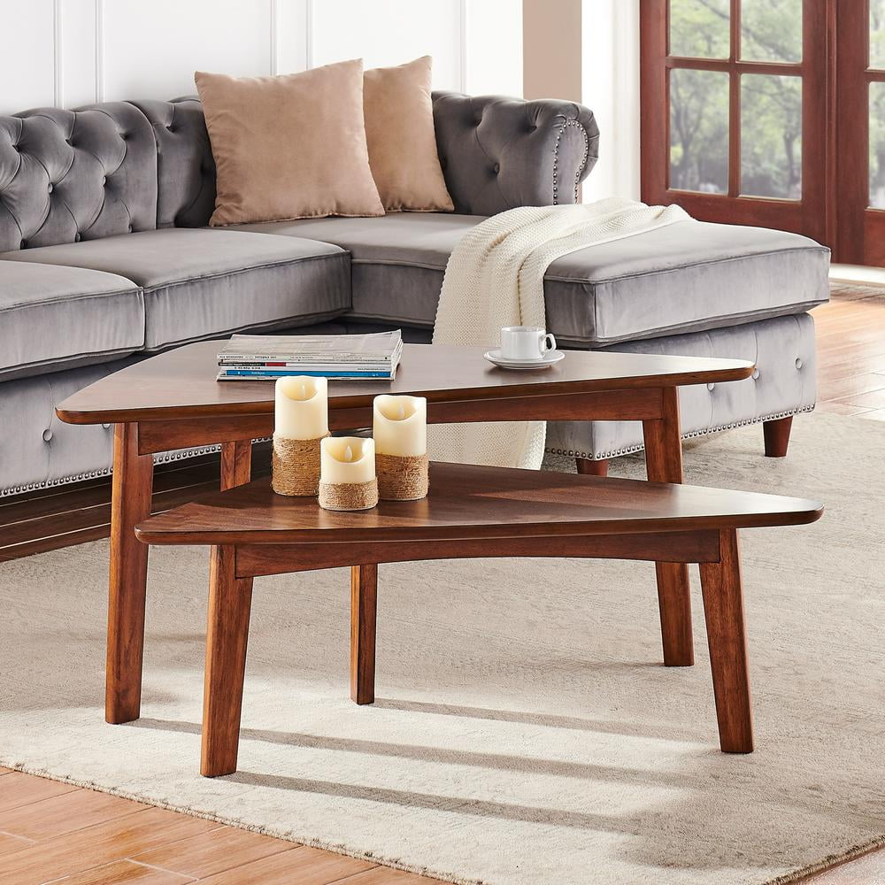 With our Alaterre Monterey 48″L Oval Mid-Century Modern Wood Coffee Table, Warm Chestnut, dare we say these tables are a modern take on mid-century modern design? With their tapered legs and warm chestnut finish you will have the perfect accent to update your living space. This gorgeous 48″ long oval coffee table with floating shelf will be the perfect accent next to your large sectional sofa. Decorate with faux plants or your favorite photos; these tables will add the finishing touch to your space.
