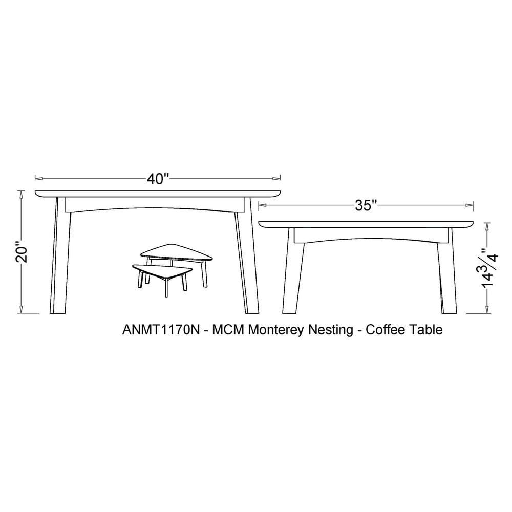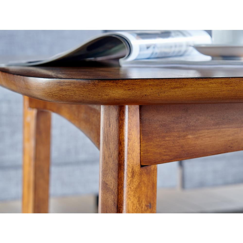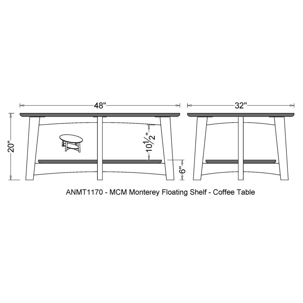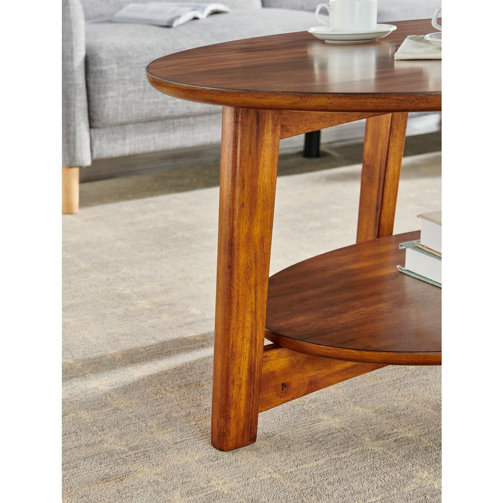 [MAIN FEATURES AND BENEFITS] Take your living room decor to the next level with this Monterey 48” L Oval Mid-Century Modern Wood Coffee Table; features warm chestnut finish, an oval tabletop and floating shelf [DIMENSIONS] Tabletop thickness 0.5”; Overall Dimensions 48” x 32” x 20” H and shelf height 10.5”H; Floor to shelf 6” [MODERN DESIGN] Tapered legs and warm chestnut finish offer a modern take on mid-century modern design [STYLISH STORAGE SOLUTIONS] Elevate your living space with the Monterey 48″ L Oval Mid-Century Modern Wood Coffee Table; featuring a warm chestnut finish and spacious oval tabletop for coffee essentials; includes a floating shelf for books [DESIGN] Transform your living area and enhance your mid-century decor with this stylish, functional Monterey Coffee Table